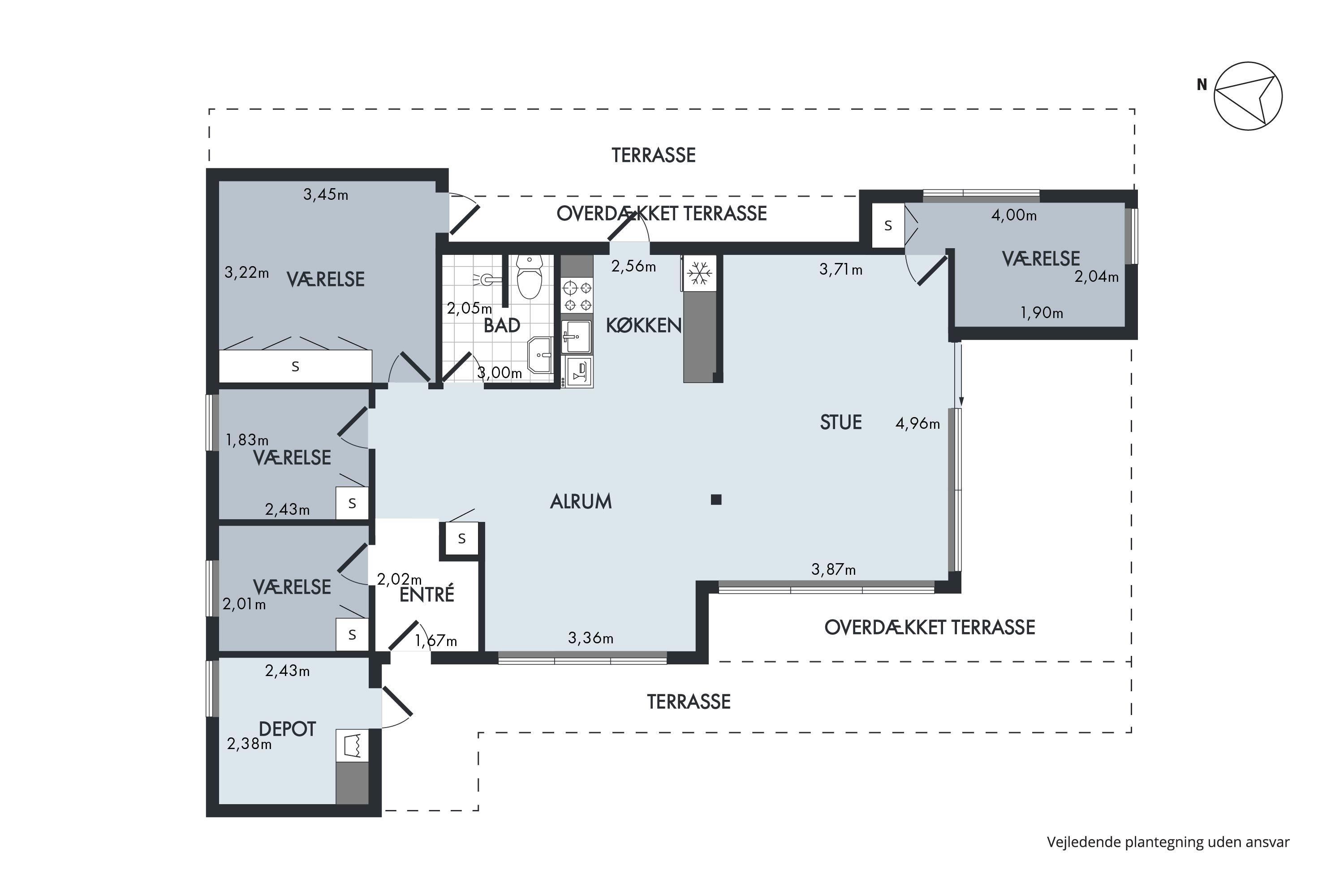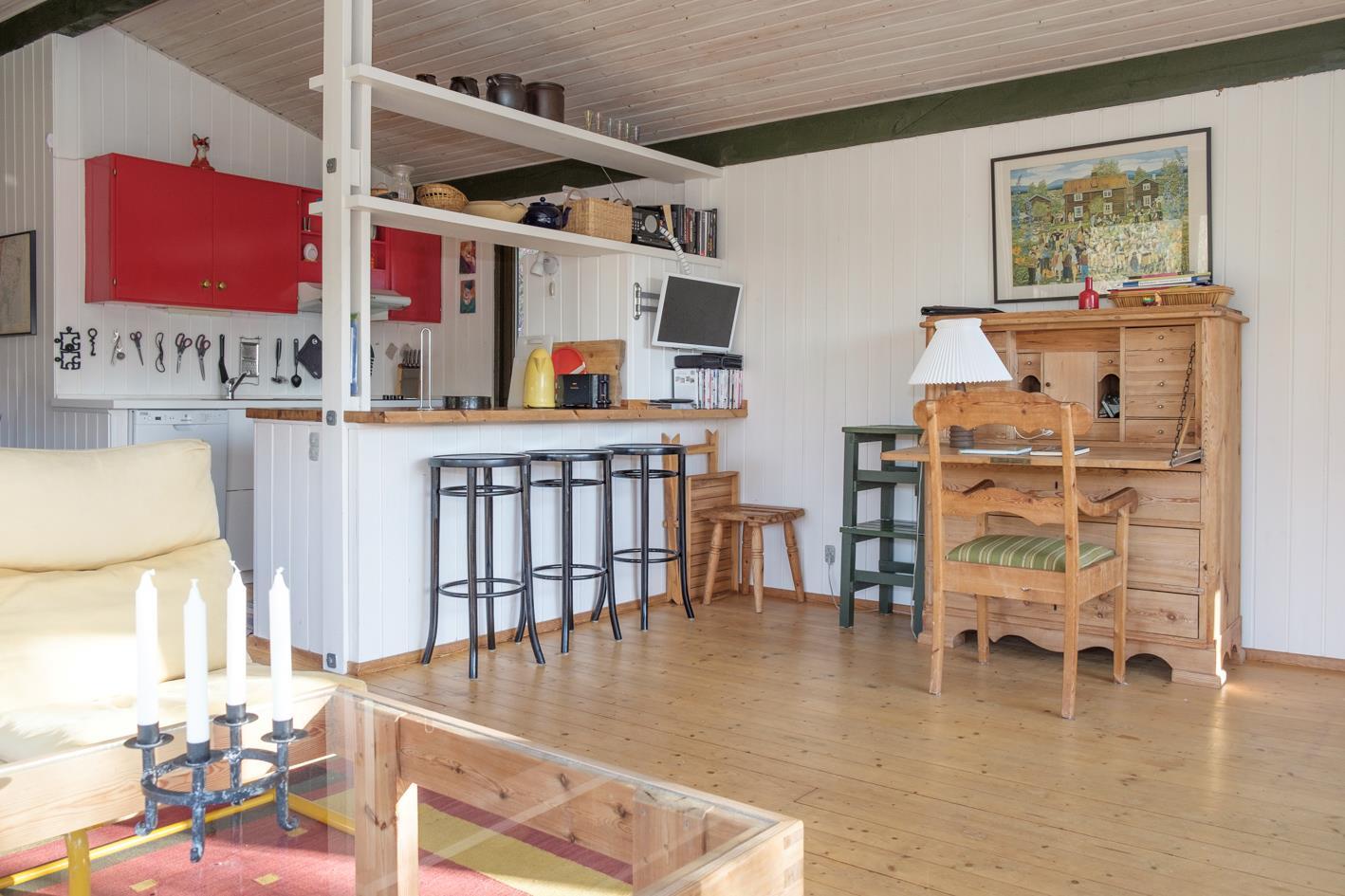 Die großen Fensterpartien sorgen für viel Licht im geräumigen Wohnzimmer, wo man die Aussicht auf die Natur genießen kann. Es ist mit bequemen Sesseln, Essecke für acht Personen mit festen Bänken und vier Stühlen, TV mit dänischen (inkl. TV2) und deutschen Programmen, DVD- und CD-Player sowie Radio ausgestattet. In offener Verbindung dazu liegt die gut ausgestattete Küche mit Glaskeramik-Kochfeld, Backofen, Kühl-/Gefrierkombination, Geschirrspüler und Mikrowelle. Die acht Schlafplätze verteilen sich auf zwei Zimmer mit Doppelbett sowie zwei Zimmer mit Etagenbett. Funktionelles Badezimmer mit Dusche und Fußbodenheizung. Die neu installierte Wärmepumpe sorgt für ein angenehmes Raumklima im ganzen Haus und einen niedrigen Energieverbrauch. Für die Kleinsten sind ein Kinderbett und ein Hochstuhl vorhanden. Internetzugang. Für einen bescheidenen Aufpreis erhält man Zugang zum neu gebauten Nebengebäude, in dem sich u. a. Spielzeug und fünf gute Fahrräder für Erwachsene befinden.