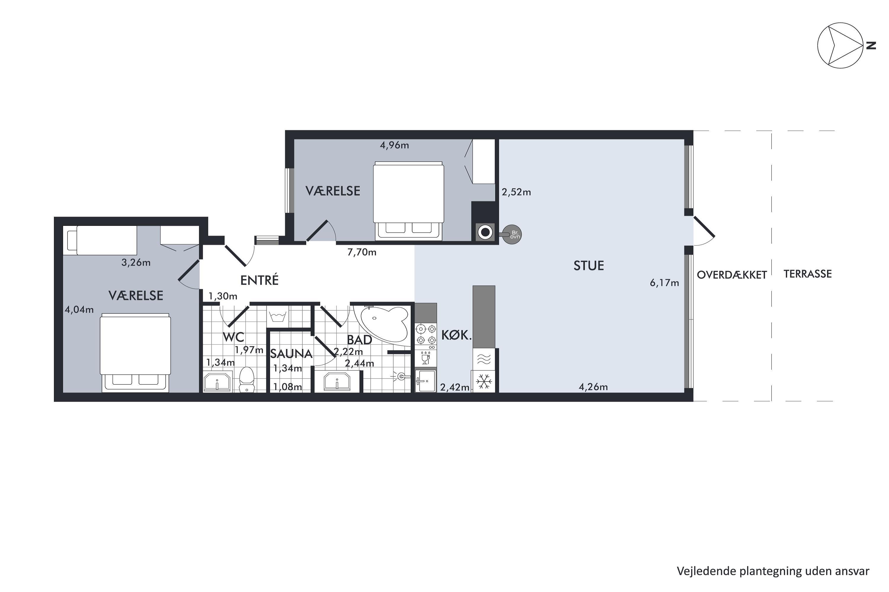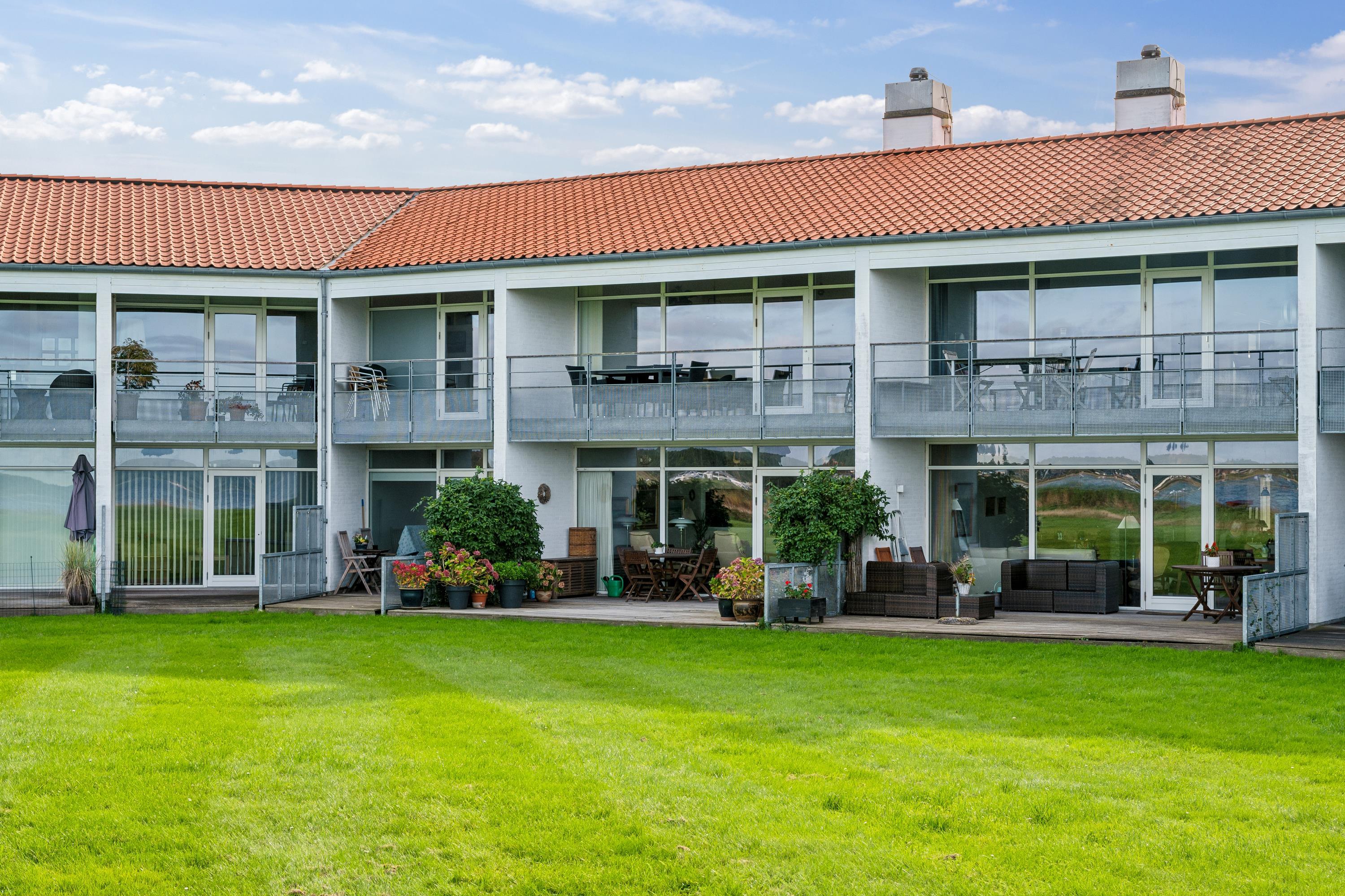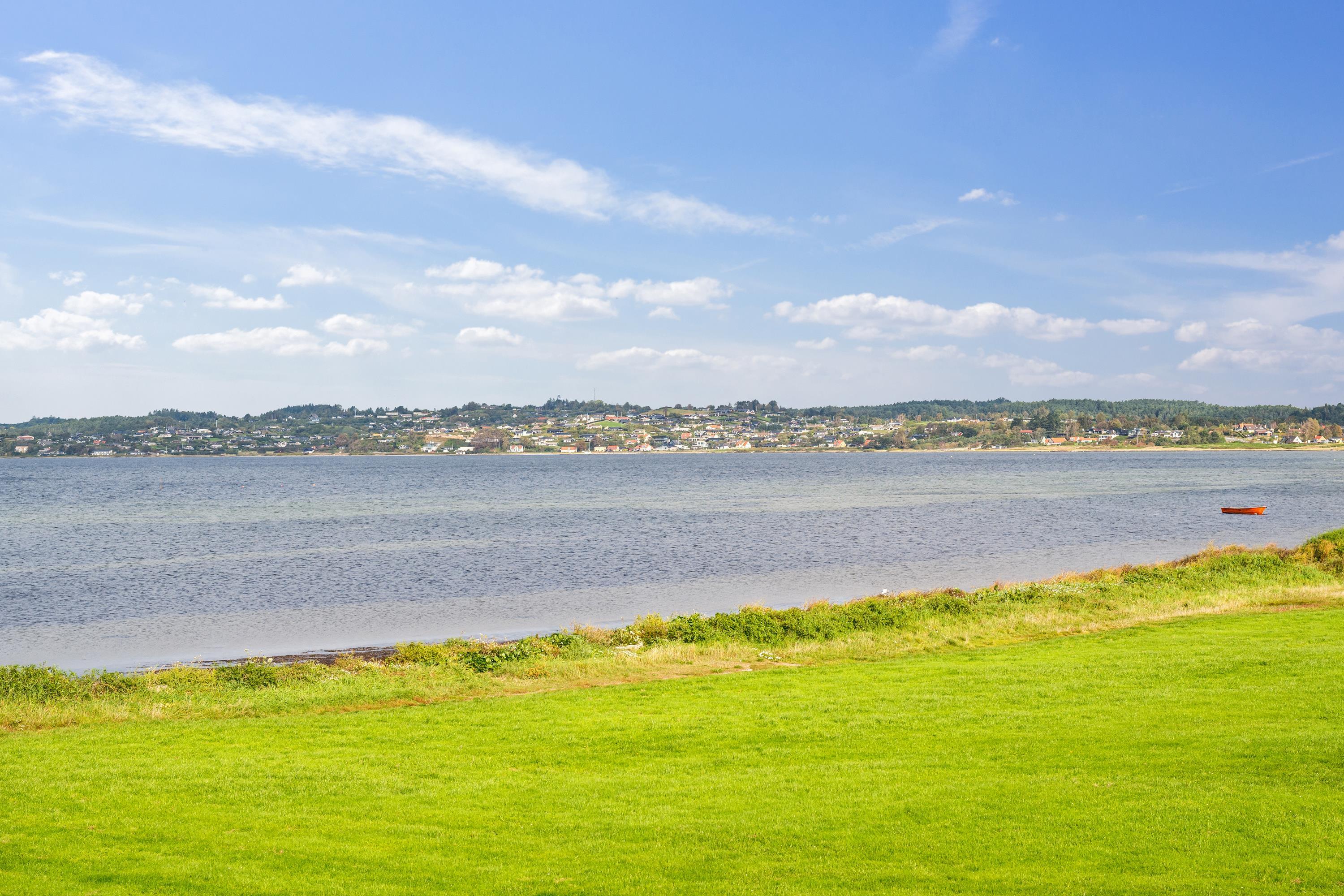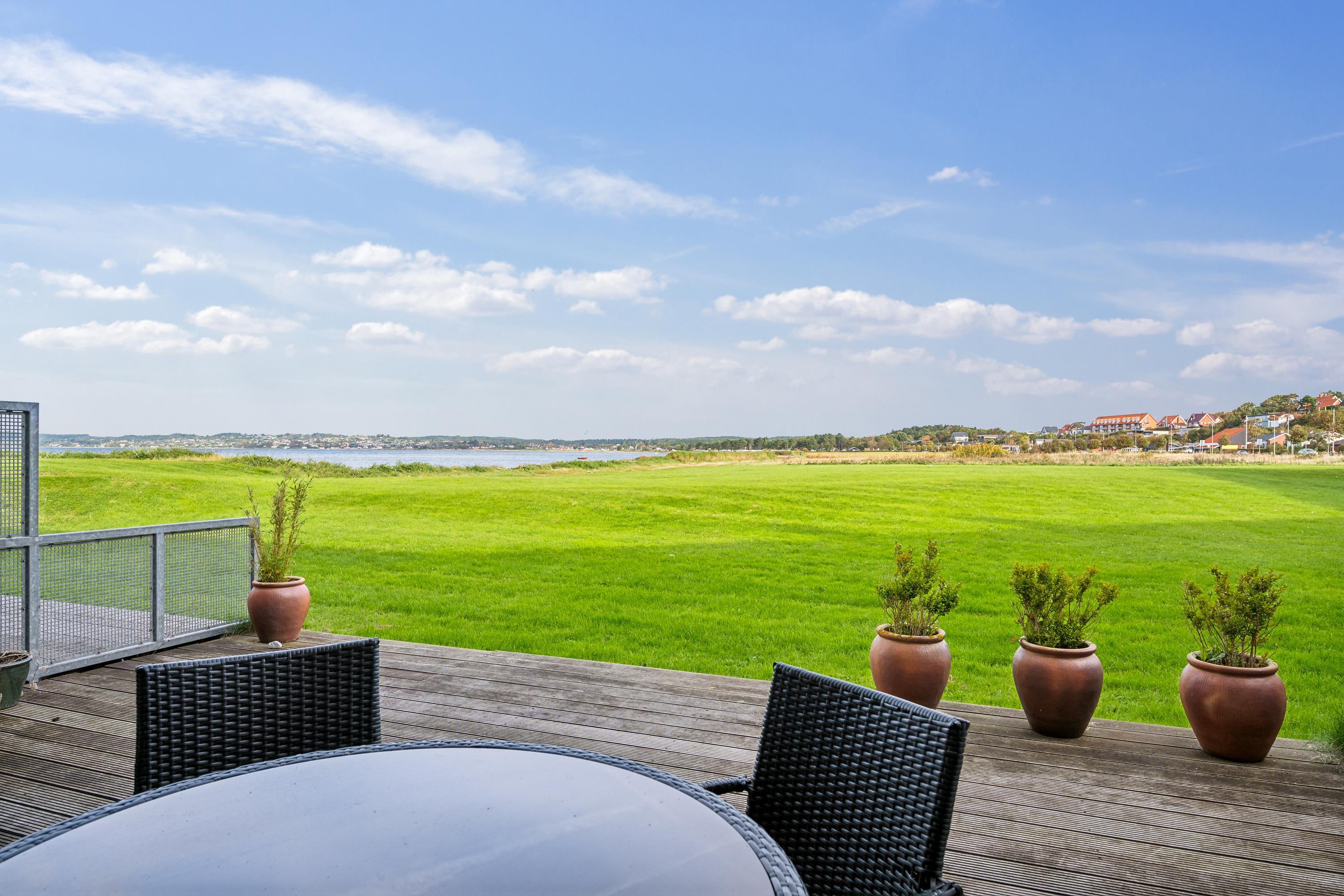 Helle und schöne Ferienwohnung, gemütlich und geschmackvoll eingerichtet mit guten Möbeln und einem Holzofen. Vom Wohnzimmer aus haben Sie Zugang zu einer schönen überdachten Terrasse mit guten Gartenmöbeln und Grill und von wo aus Sie die schönste Aussicht haben. In Verbindung mit dem Wohnzimmer befindet sich die funktionale Küche, unter anderem mit einem Geschirrspüler. Schönes Badezimmer mit Dusche und Whirlpool sowie Zugang zu Sauna und Toilette in einem separaten Raum. Die Ferienwohnung verfügt über zwei gute Schlafzimmer, eines mit einem Doppelbett und ein Zimmer mit einem Doppelbett und einem Einzelbett. Die Wohnung liegt in der Nähe des Strandes, wo es einen guten Steg gibt. Eine sehr schöne Wohnung nur 5 Gehminuten vom Zentrum entfernt. Hier finden Sie z.B. das alte Rathaus und die Malzfabrik. In den gemütlichen Kopfsteinpflasterstraßen der Stadt finden Sie eine Vielzahl kleiner gemütlicher Fachgeschäfte und Cafés und am Hafen finden Sie das Glasmuseum mit moderner Glaskunst und die Fregatte Jylland.