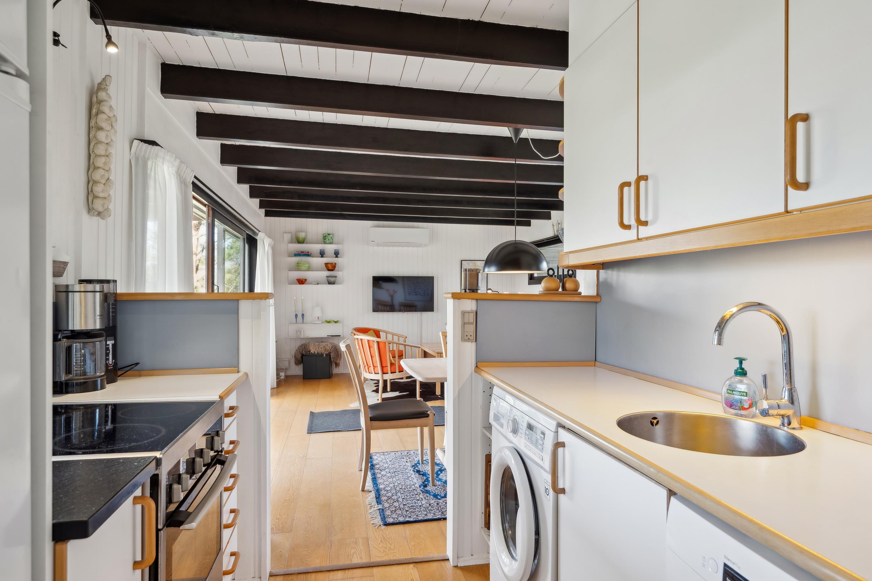 Nicht weit von der Stadt Ebeltoft entfernt liegt dieses äußerst gemütliche Ferienhaus in wunderschöner Naturumgebung. Hier wird man von einem hellen und einladenden Wohnzimmer mit Holzofen und Wärmepumpe empfangen – von hier aus hat man Zugang zu einer schönen, überdachten Terrasse mit Gartenmöbeln. Die Küche ist klein, aber funktional eingerichtet und u.a. mit einer Spülmaschine ausgestattet. Im Badezimmer befindet sich eine komfortable Duschkabine.