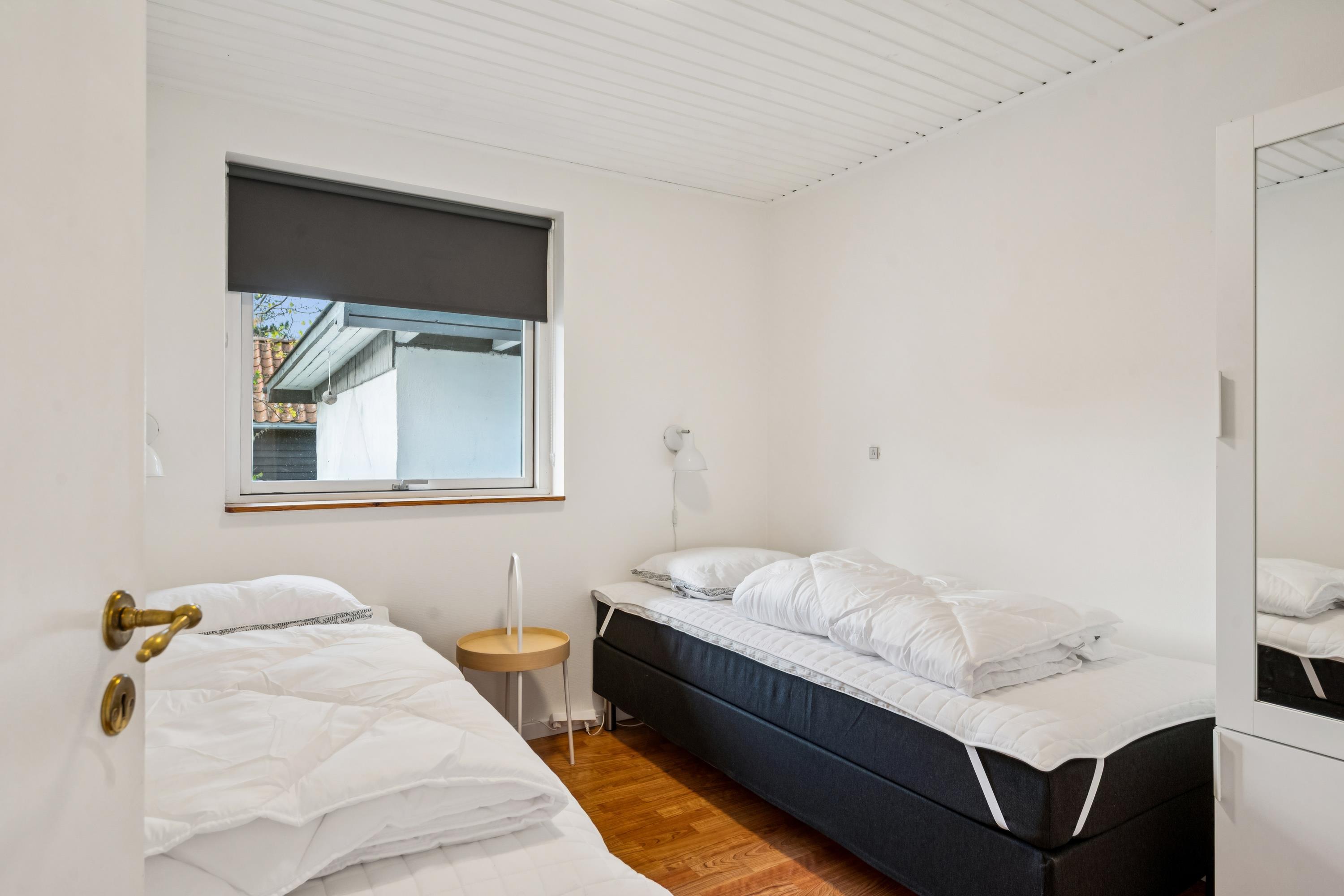Die Schlafmöglichkeiten verteilen sich auf drei Zimmer: eins mit zwei Etagenbetten, eins mit zwei Einzelbetten und eins mit Doppelbett. Für die kleinen Gäste gibt es Hochstuhl und Kinderbett. Fernseher mit dänischen, deutschen und nordischen Kanälen vorhanden.