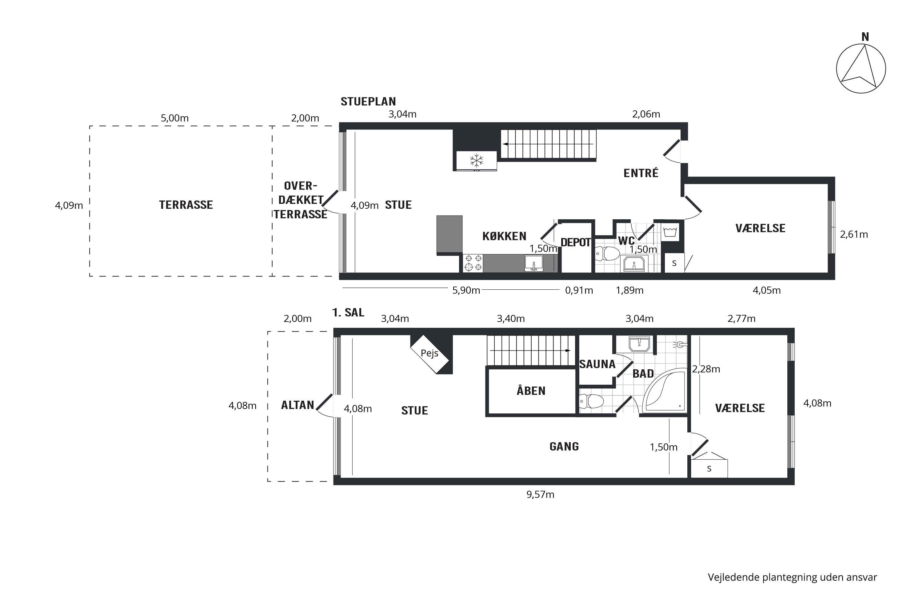 Vom Eingangsbereich aus kommt man in die gut ausgestattete, stilsichere Küche in offener Verbindung zum hellen und gut möblierten Esszimmer mit wandhängendem Kaminofen, Essplatz für vier Personen und Ausgang auf die Terrasse. Die Küche ist mit Glaskeramik-Kochfeld, Backofen, großer Kühl-/Gefrierkombination, Geschirrspüler und Mikrowelle ausgestattet. Im 1. Stock befindet sich ein Wohnzimmer mit Sitzecke, TV mit dänischen (inkl. TV2) und deutschen Programmen sowie Ausgang auf den schönen, überdachten Balkon. Die vier Schlafplätze verteilen sich auf ein Zimmer im Erdgeschoss mit zwei breiten Einzelbetten und ein Schlafzimmer im 1. Stock mit Doppelbett. Schickes Badezimmer mit Dusche, 1-Pers.-Whirlwanne und Sauna sowie Gäste-WC mit Dusche, Waschmaschine und Trockner. Beide Sind mit Fußbodenheizung ausgestattet. Internetzugang.