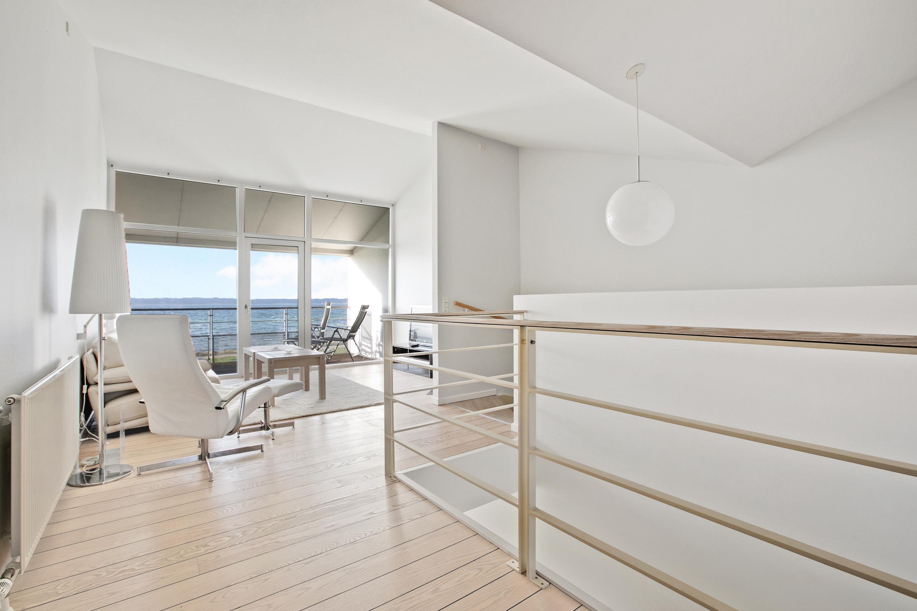 Wunderschöne und helle zweistöckige Ferienwohnung am Hotel Ebeltoft Strand, in erster Reihe und mit ungestörtem Blick auf die Bucht Ebeltoft Vig. Hier wohnen Sie 20 m von einem kinderfreundlichen Badestrand mit Badesteg und nur zwei Minuten vom Zentrum von Ebeltoft entfernt. Die Wohnung hat eine nach Westen gewandte, teilweise überdachte Fliesenterrasse sowie einen überdachten Aussichtsbalkon mit Gartenmöbeln, Liegestühlen, Sonnenschirm und Grill.