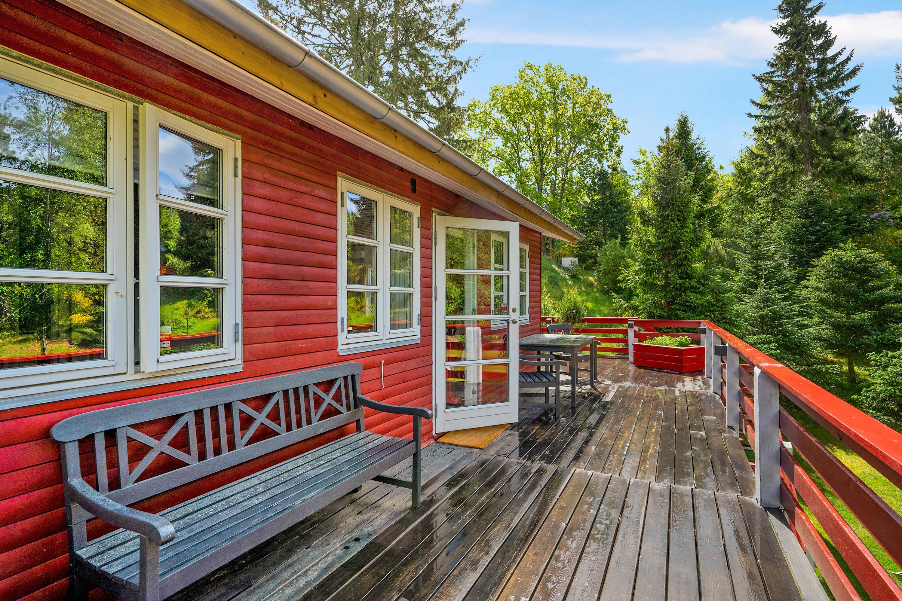 Schönes Ferienhaus in naturschöner Lage in einem malerischen Waldgebiet nur wenige Kilometer vom Stadtzentrum Ebeltoft entfernt und in Fußwegentfernung zum Golfplatz, mit Badestränden im Osten und Westen. Schöne Südwestterrasse mit toller Aussicht auf das abschüssige Grundstück, auf dem Sie u. a. äsende Rehe beobachten können. Gute Gartenmöbel, Liegestühle, Sonnenschirm und Grill.