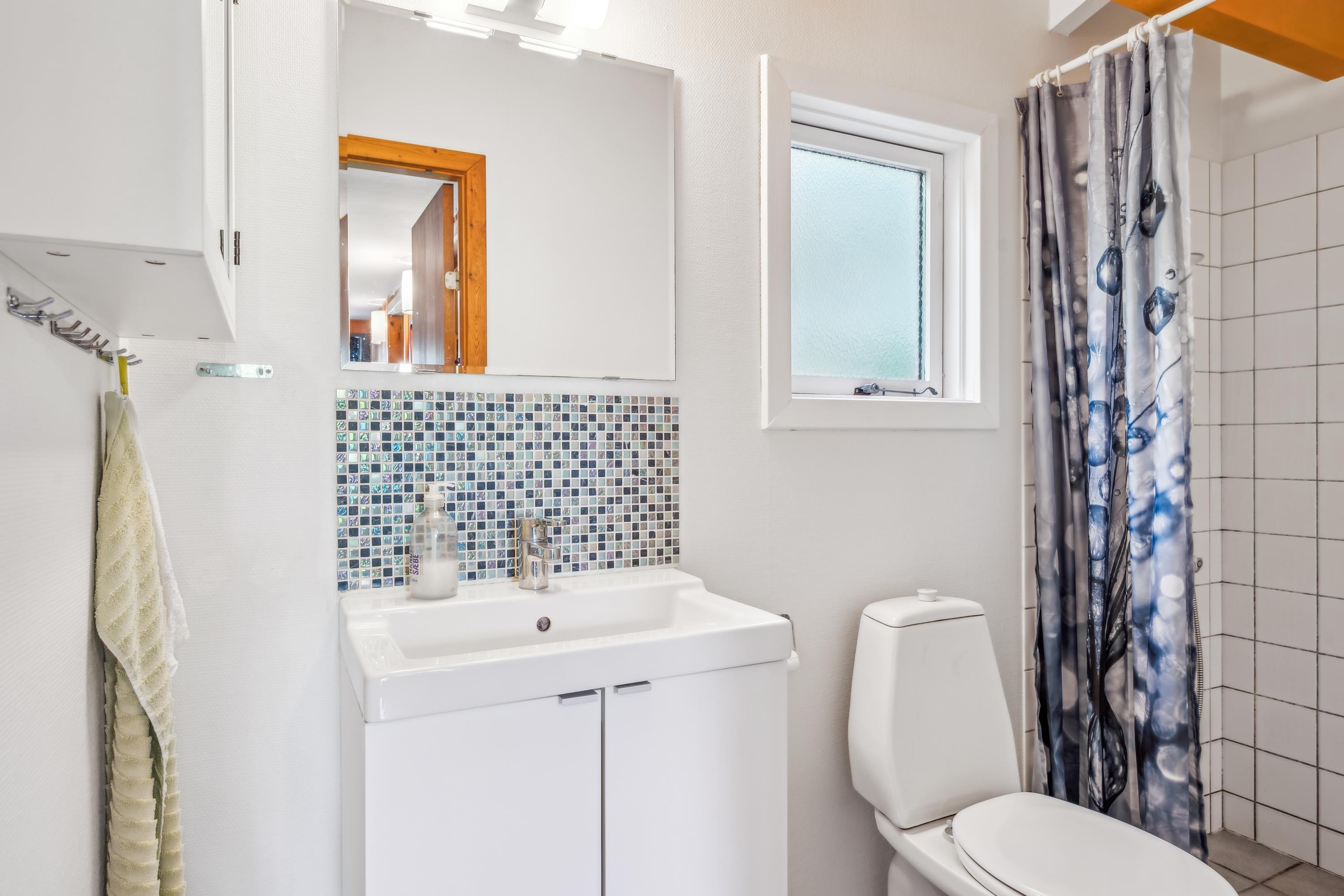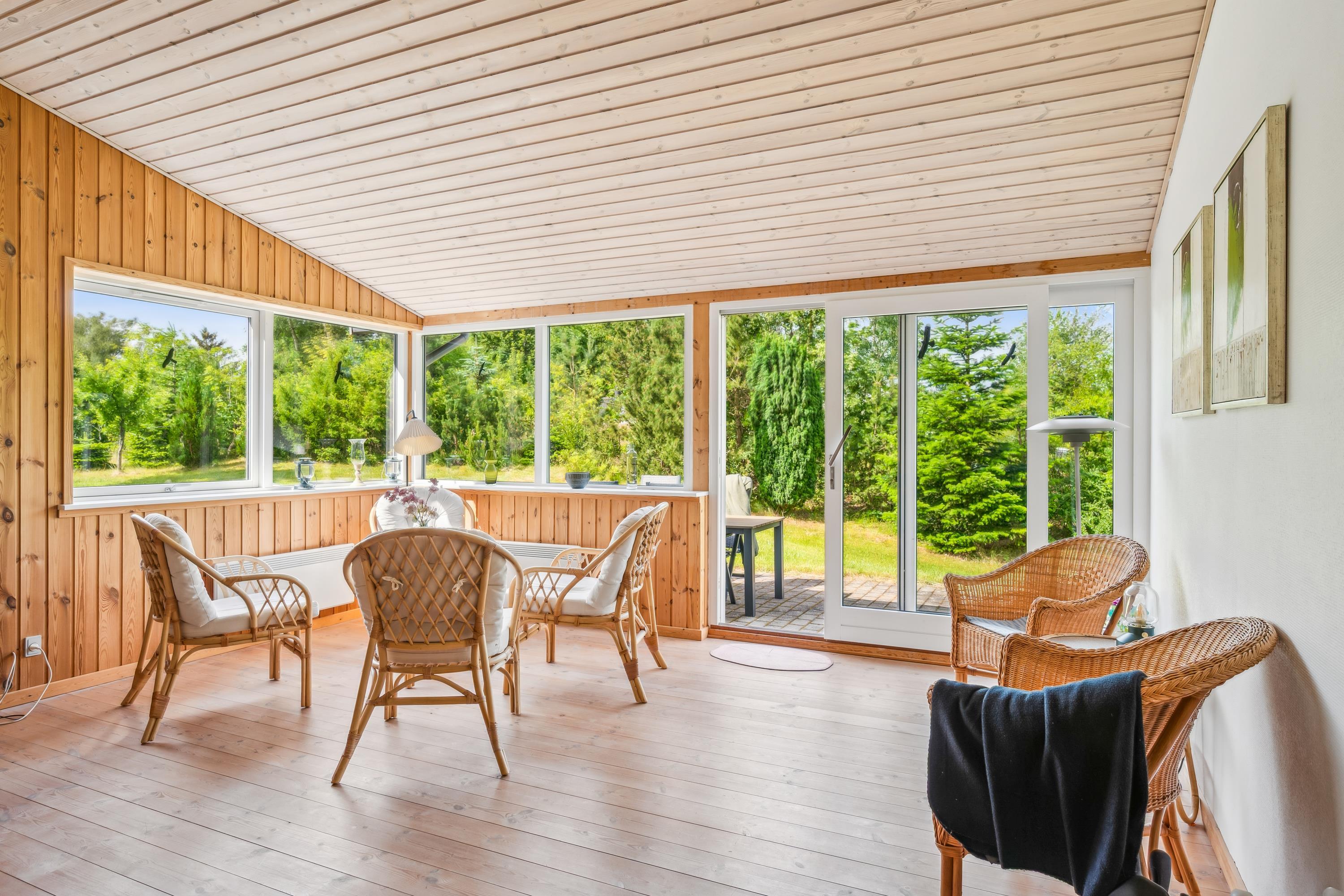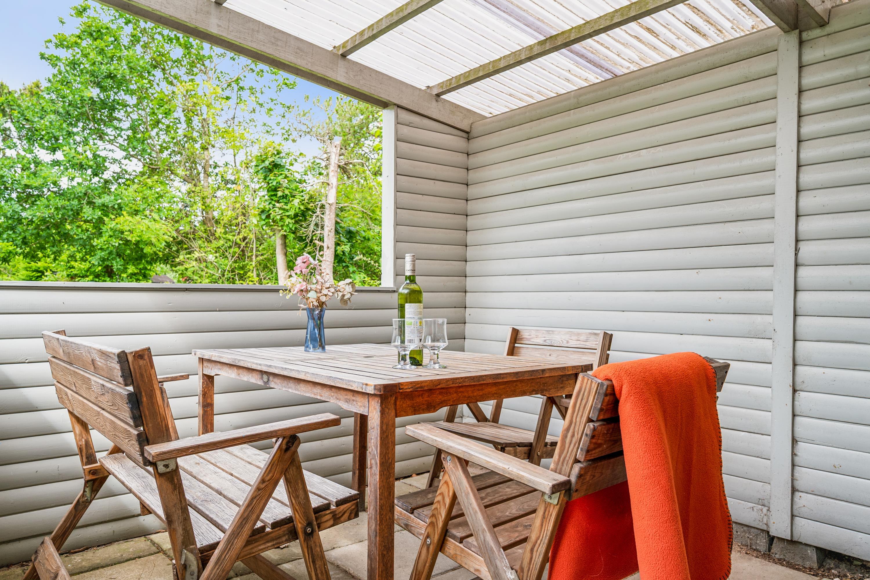 Das Haus liegt auf einem wirklich schönen, bewachsenen Grundstück mit gemütlichen Ecken. Zum Haus gehören sowohl eine überdachte als auch eine offene Terrasse mit Gartenmöbeln, Liegestühlen und Grill. Das Haus liegt nur 100 Meter von einem schönen Naturpfad entfernt. Die Lage in Vibæk Strand ist ein gemütliches und kinderfreundliches Gebiet, nahe an einem guten Sandstrand und mit guten Einkaufsmöglichkeiten in fußläufiger Entfernung vom Haus. Die Stadt Ebeltoft mit ihren vielen Attraktionen und Sehenswürdigkeiten ist nur 5 Autominuten entfernt. Am Hafen befindet sich das Glasmuseum, das führend in moderner Glaskunst ist. Hier findet man auch mehrere gute Restaurants und Geschäfte sowie die Möglichkeit, frisch gefangenen Fisch zu kaufen. In Ebeltoft befindet sich auch das Alte Rathaus, zu dem Menschen von nah und fern kommen, um zu heiraten. In der Sommerzeit kann man hier außerdem um 20 und 21 Uhr die Nachtwächter treffen, die singend durch die Straßen auf ihrer Abendrunde gehen. Eine Viertelstunde Autofahrt vom Haus entfernt liegt der Ree Park. Dort besteht die Möglichkeit, auf Jeep-Safari zu gehen und die wilden Tiere ganz nah zu erleben. Etwa eine halbe Stunde Autofahrt vom Haus entfernt befinden sich das Kattegatcenter in Grenaa, wo man beim Füttern der großen Haie mithelfen kann, und der größte Freizeitpark Skandinaviens.