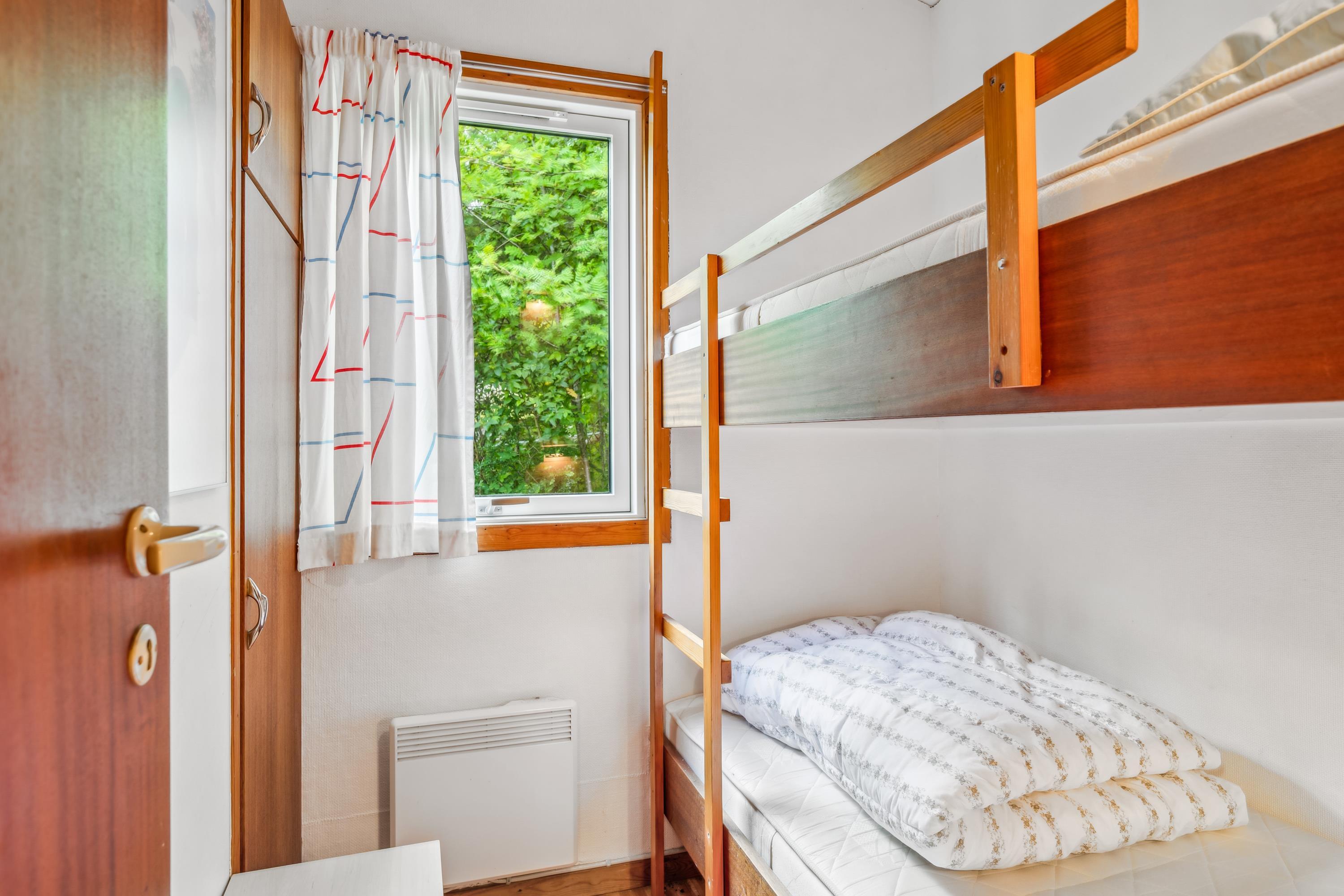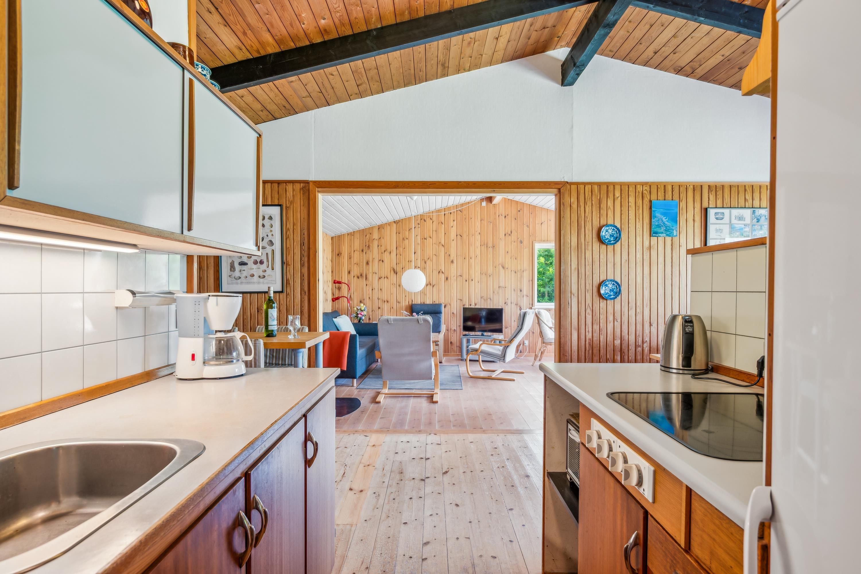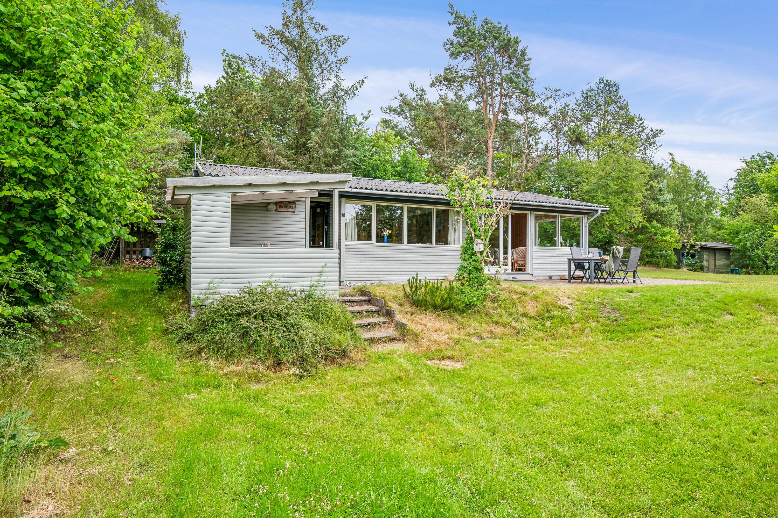 Nicht weit von der Stadt Ebeltoft entfernt befindet sich dieses ältere, authentische Ferienhaus auf einem schönen Grundstück mit großer Rasenfläche. Hier findet man ein helles Wohnzimmer mit Kaminofen und Zugang zu einer schönen Terrasse mit Gartenmöbeln. Angrenzend an das Wohnzimmer befindet sich die funktionale Küche mit gutem Essbereich. Schönes Badezimmer mit Dusche. Die Schlafplätze des Hauses befinden sich in zwei Zimmern – eines mit Doppelbett und eines mit Etagenbett.