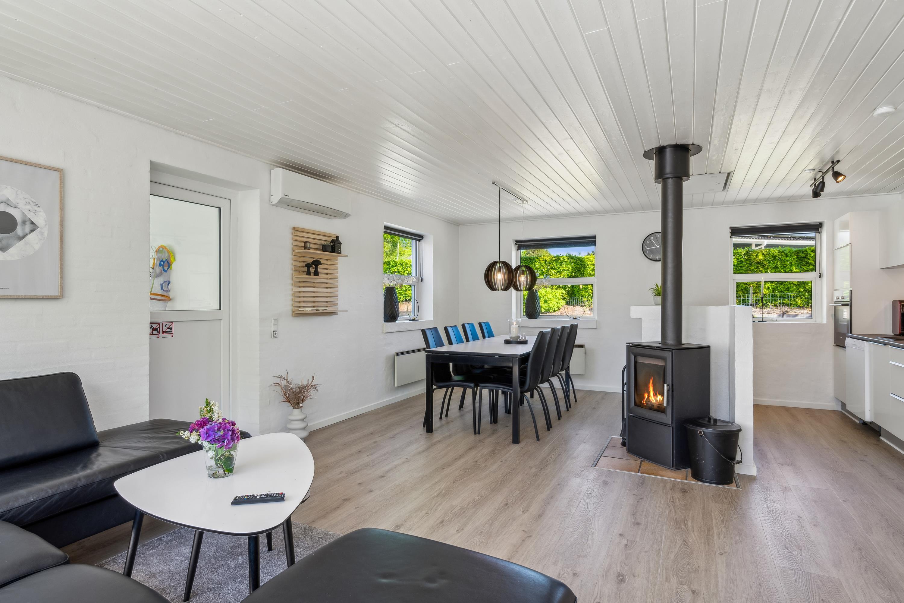 Das Haus verfügt über 4 Schlafzimmer - 3 mit einem Doppelbett und 1 mit einem guten Etagenbett, insgesamt 8 Schlafplätze. Großes, schickes Badezimmer mit Fußbodenheizung, Dusche, Waschmaschine und Trockner, und ein Badezimmer im Poolraum. Fernseher mit dänischen und deutschen Programmen sowie Radio. Internetzugang. Von der Terrasse aus besteht Zugang zum großen, hellen Poolraum mit Whirlpool.
