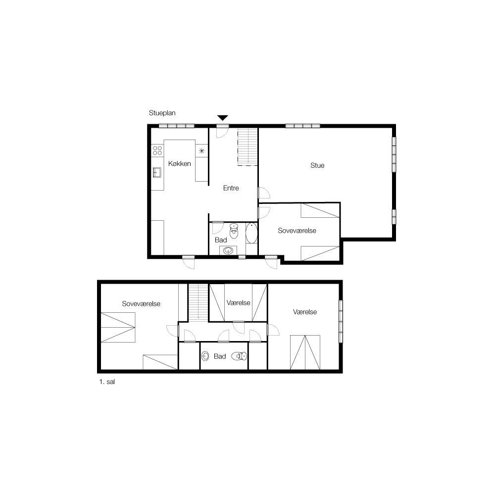 Das Haus hat zwei Etagen und besteht im Erdgeschoss aus einem gemütlichen Wohnzimmer mit TV mit dänischen und deutschen Kanälen und DVD. Große und helle, separate Eßecke mit direkter Verbindung zur schönen, praktischen Küche mit Ceranfeld, Kühlschrank mit Gefrierfach, Waschmaschine, Geschirrspüler und Mikrowelle. Die 8 Betten verteilen sich auf ein Zimmer im Erdgeschoss mit zwei Einzelbetten und Blick auf den Garten, und im 1. Stock ein Schlafzimmer mit Doppelbett und gemütlicher Sitzecke mit Sofa, ein Schlafzimmer mit zwei Einzelbetten und 1 großes Schlafzimmer mit Doppelbett und Extra Bett. Im Erdgeschoss befindet sich ein schönes, helles Badezimmer mit Dusche und Fußbodenheizung, und im 1. Stock eine Gästetoilette. Internetzugang.