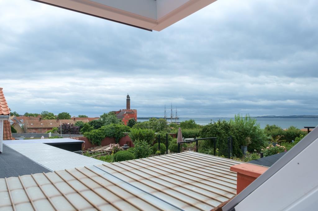 Erleben Sie ein großes Stadthaus in zentraler Lage von Ebeltoft mit Blick auf die Stadt und den Hafen.