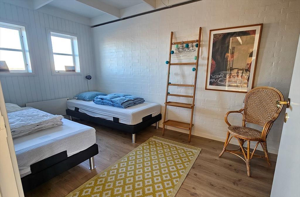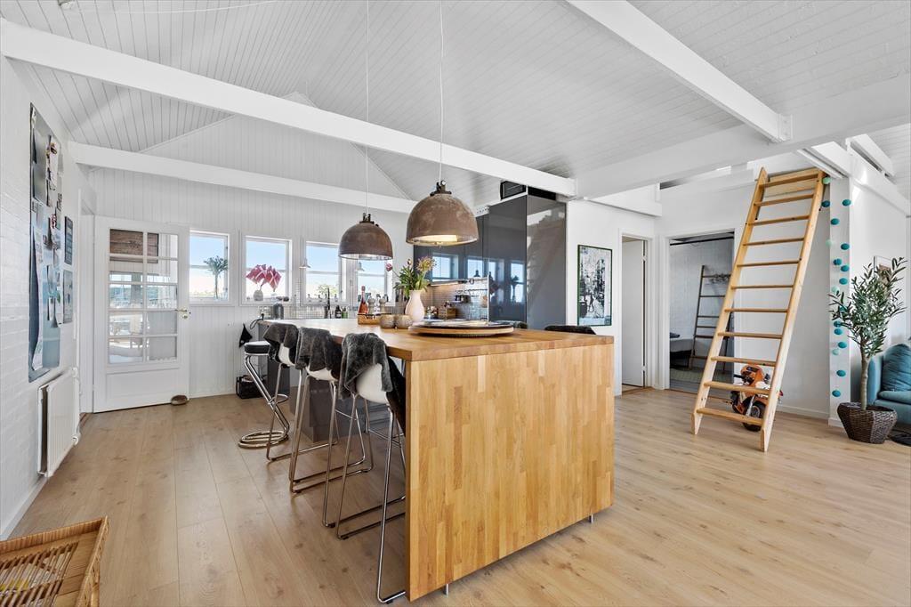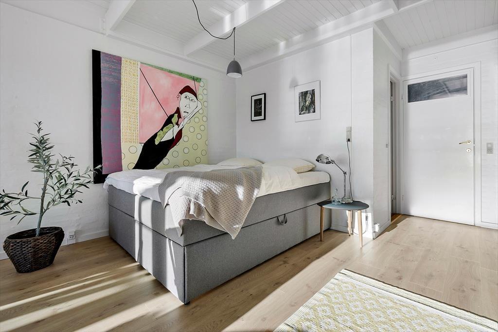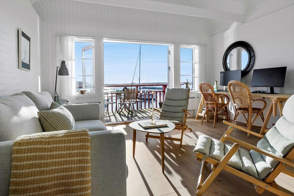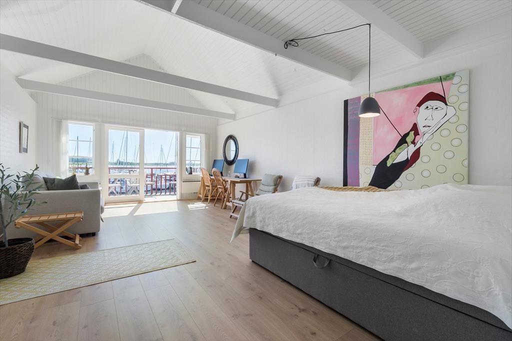 Zentraler als in dieser Wohnung kannst du nicht wohnen. Sie liegt in einem der aufregendsten und maritimsten Viertel, das Ebeltoft zu bieten hat. Es ist nicht weit zum Fischhändler, den wirklich guten Restaurants oder was immer du dir wünscht. Die Wohnung ist sehr groß und geräumig. In der offenen Küche und im Wohnraum ist jeder mit dabei, auch beim Zubereiten der Mahlzeiten. Leicht vergeht eine Stunde nur mit "aus dem Fenster schauen", denn hier ist immer etwas spannendes los. Durch die vielen und großen Fenster herrscht ein ganz besonderes Licht. Zum Schlafen stehen zwei große Schlafzimmer, eines mit einem Doppelbett und einem Schlafsofa für jeweils zwei Gäste und eines mit zwei Einzelbetten, sowie ein Hems (Schlafboden) mit zwei Schlafstellen zur Verfügung. Außerdem gibt es zwei Badezimmer. Die Küche ist gut ausgestattet und bietet reichlich Arbeitsfläche.
