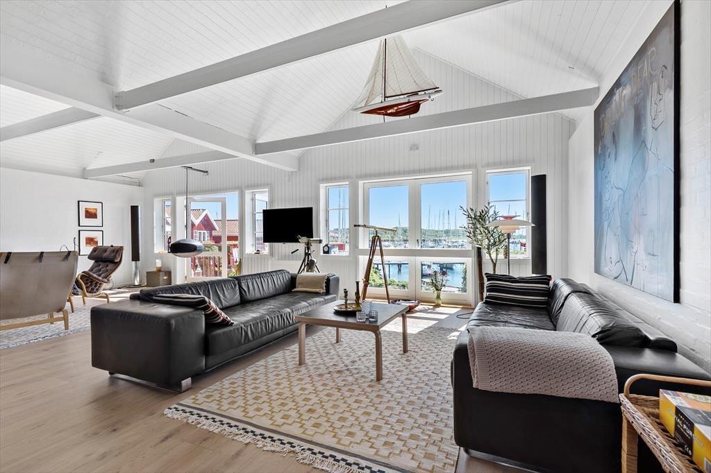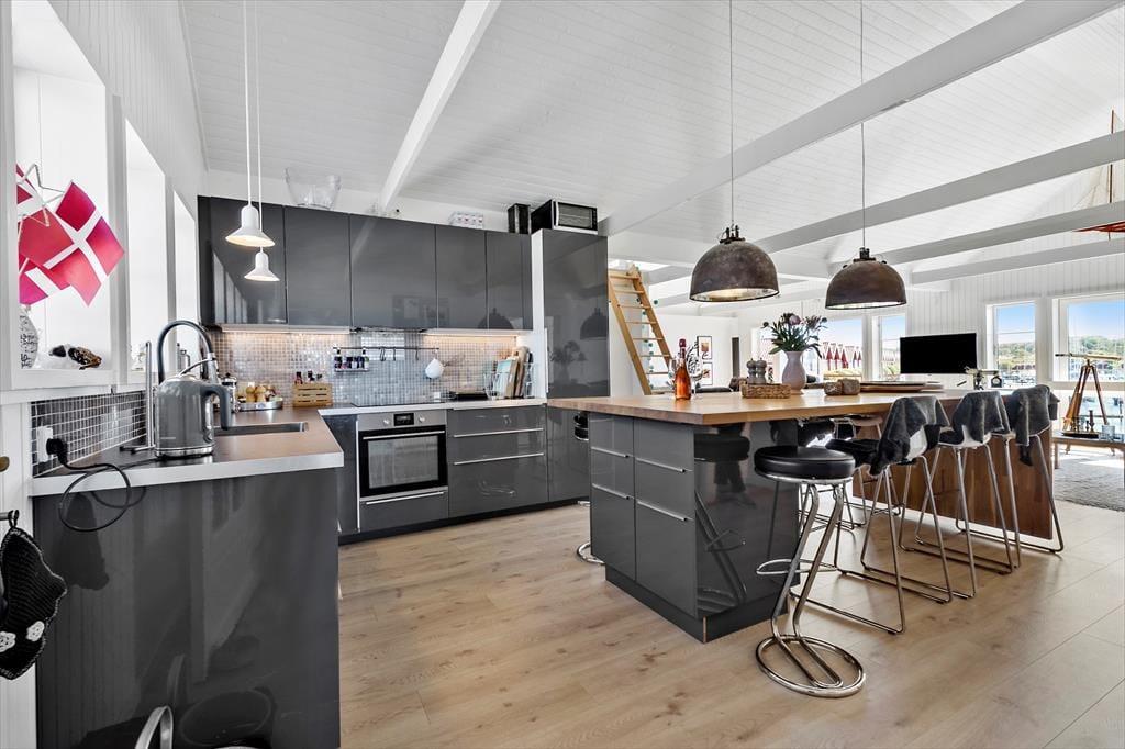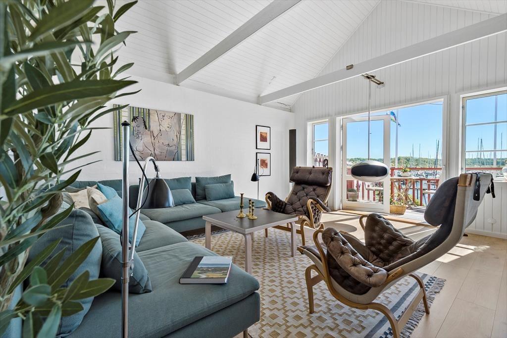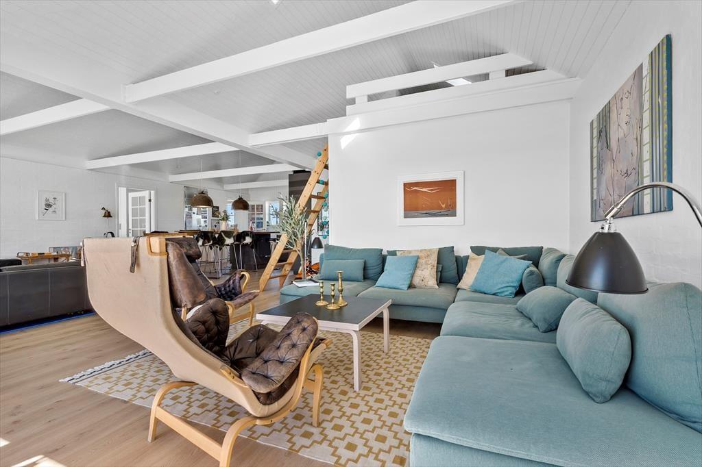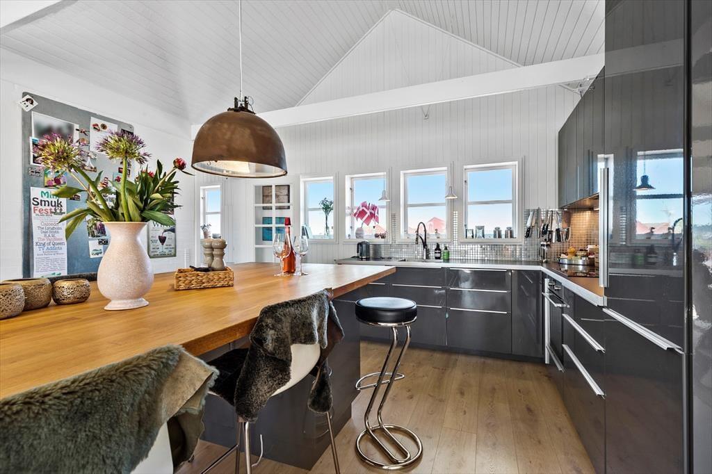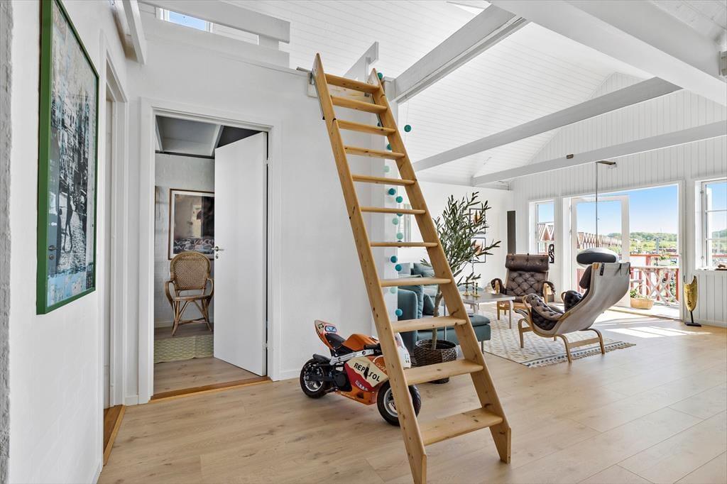 Zentraler als in dieser Wohnung kannst du nicht wohnen. Sie liegt in einem der aufregendsten und maritimsten Viertel, das Ebeltoft zu bieten hat. Es ist nicht weit zum Fischhändler, den wirklich guten Restaurants oder was immer du dir wünscht. Die Wohnung ist sehr groß und geräumig. In der offenen Küche und im Wohnraum ist jeder mit dabei, auch beim Zubereiten der Mahlzeiten. Leicht vergeht eine Stunde nur mit "aus dem Fenster schauen", denn hier ist immer etwas spannendes los. Durch die vielen und großen Fenster herrscht ein ganz besonderes Licht. Zum Schlafen stehen zwei große Schlafzimmer, eines mit einem Doppelbett und einem Schlafsofa für jeweils zwei Gäste und eines mit zwei Einzelbetten, sowie ein Hems (Schlafboden) mit zwei Schlafstellen zur Verfügung. Außerdem gibt es zwei Badezimmer. Die Küche ist gut ausgestattet und bietet reichlich Arbeitsfläche.