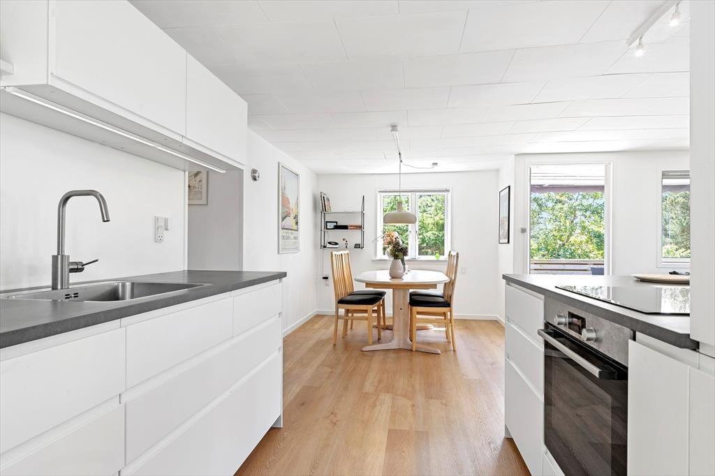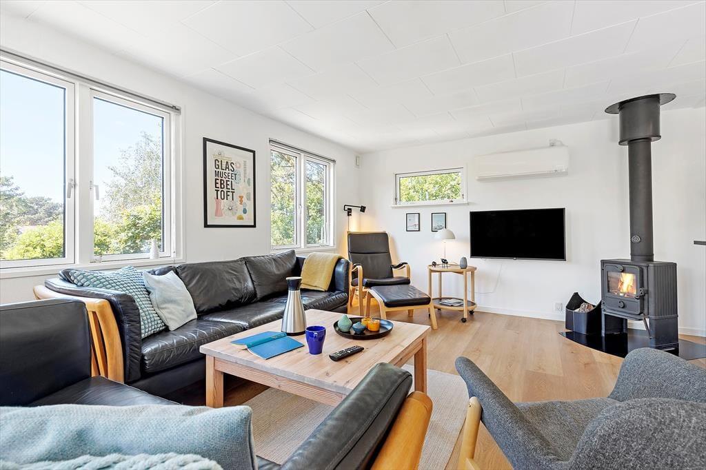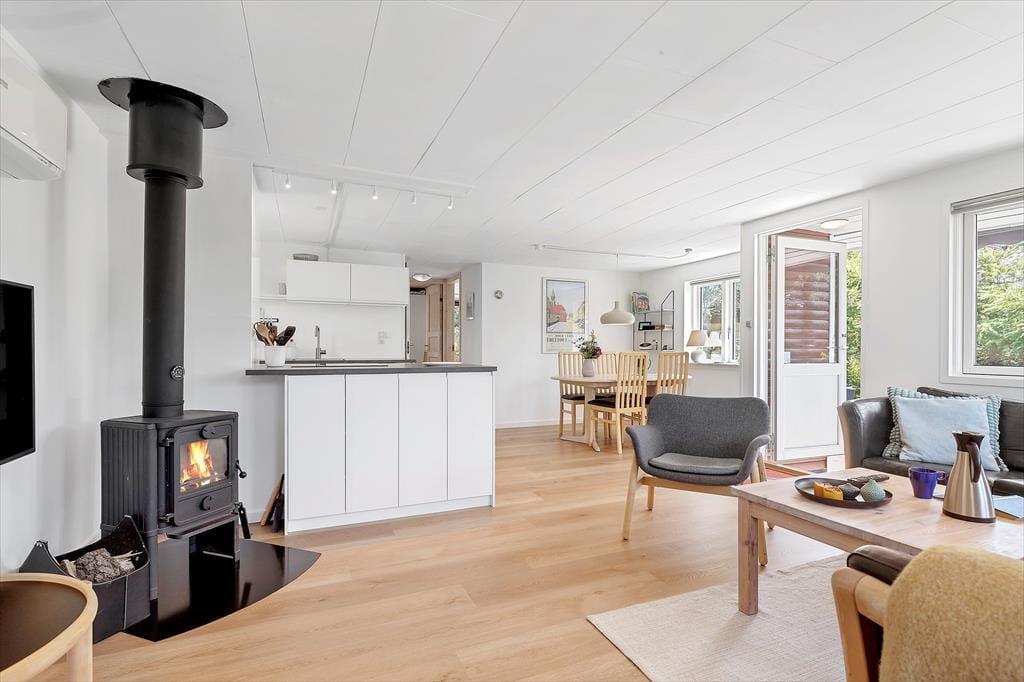 Hier in Vibæklund 5 bietet dieses schöne Ferienhaus einen gemütlichen Ausgangspunkt für euren Urlaub in einer landschaftlich reizvollen Umgebung in der Nähe der Stadt Ebeltoft und des Strandes. Das Haus hat eine warme und entspannte Atmosphäre mit einem schönen, modernen Ambiente, das es euch leicht macht, zu entspannen. Die Einrichtung ist schlicht und funktional mit hellen Räumen und großen Fensterfronten, die die Natur direkt ins Wohnzimmer einladen. Hier könnt ihr die Ruhe vor dem Kamin genießen oder euch um den Esstisch versammeln, um Spiele zu spielen und lange Abendessen zu genießen. Das Ferienhaus verfügt über 2 schöne Schlafzimmer.