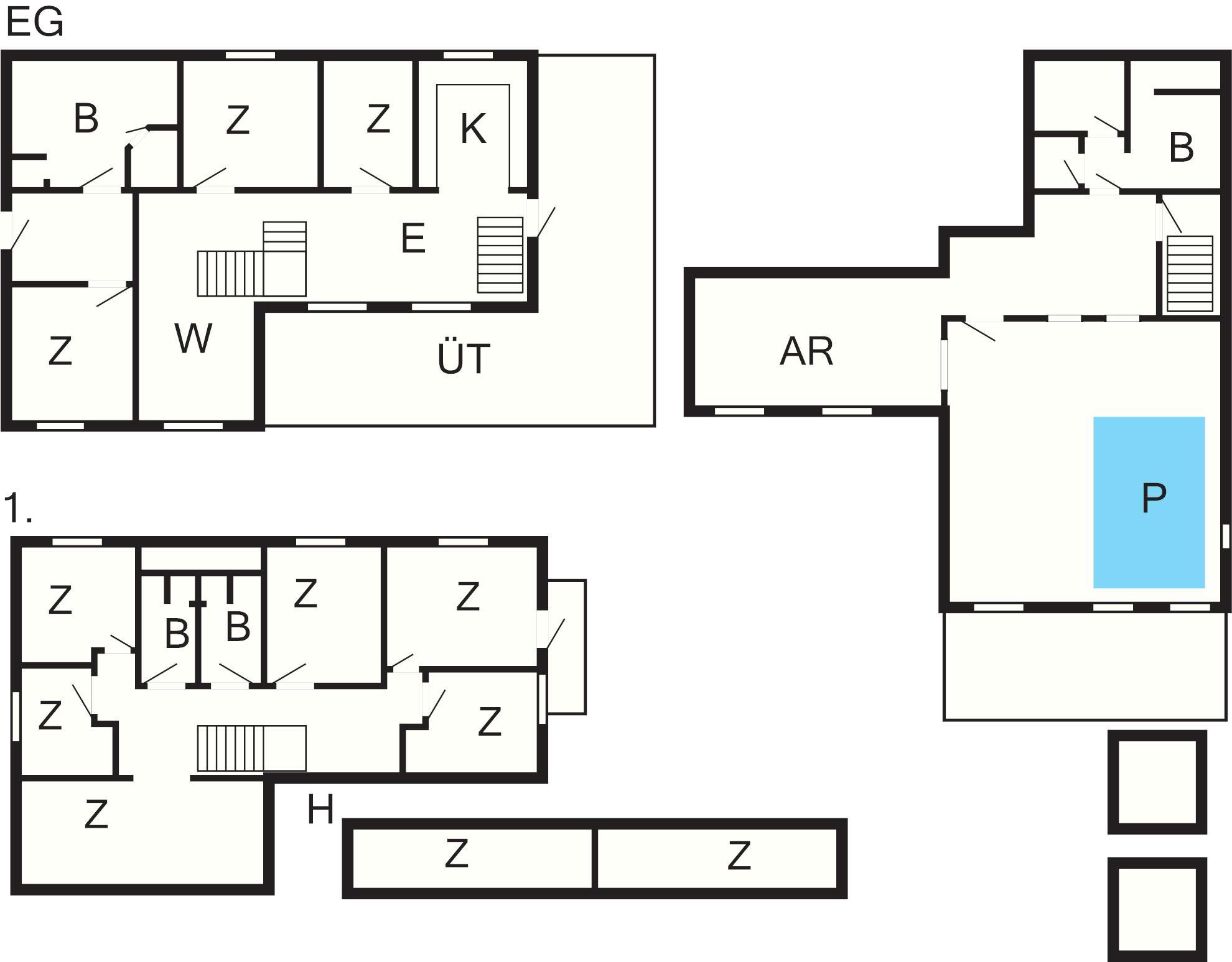 8 Schlafz.: (1DB)+(1DB)+(1DB)+(1DB)+(1DB+2K)+(1DB+2K)+(1DB+1B)+(1DB+1B)