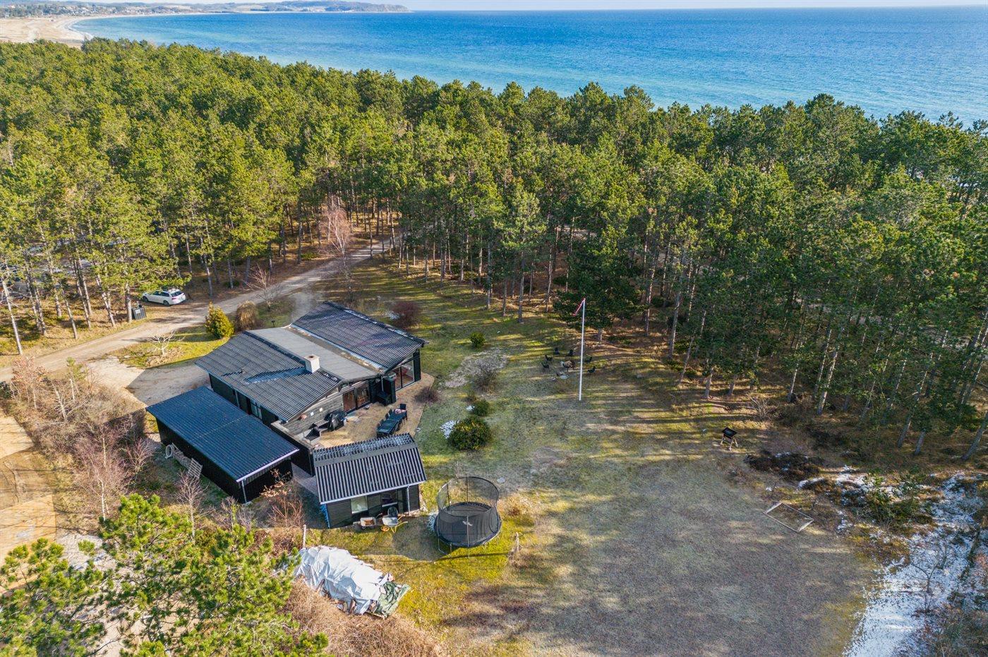Mit einer einzigartigen Lage, nur 50 Meter vom Wasser entfernt, ist das Meer vom Grundstück dieses Hauses zu ahnen. Das Ferienhaus wird an bis zu 10 Personen vermietet.