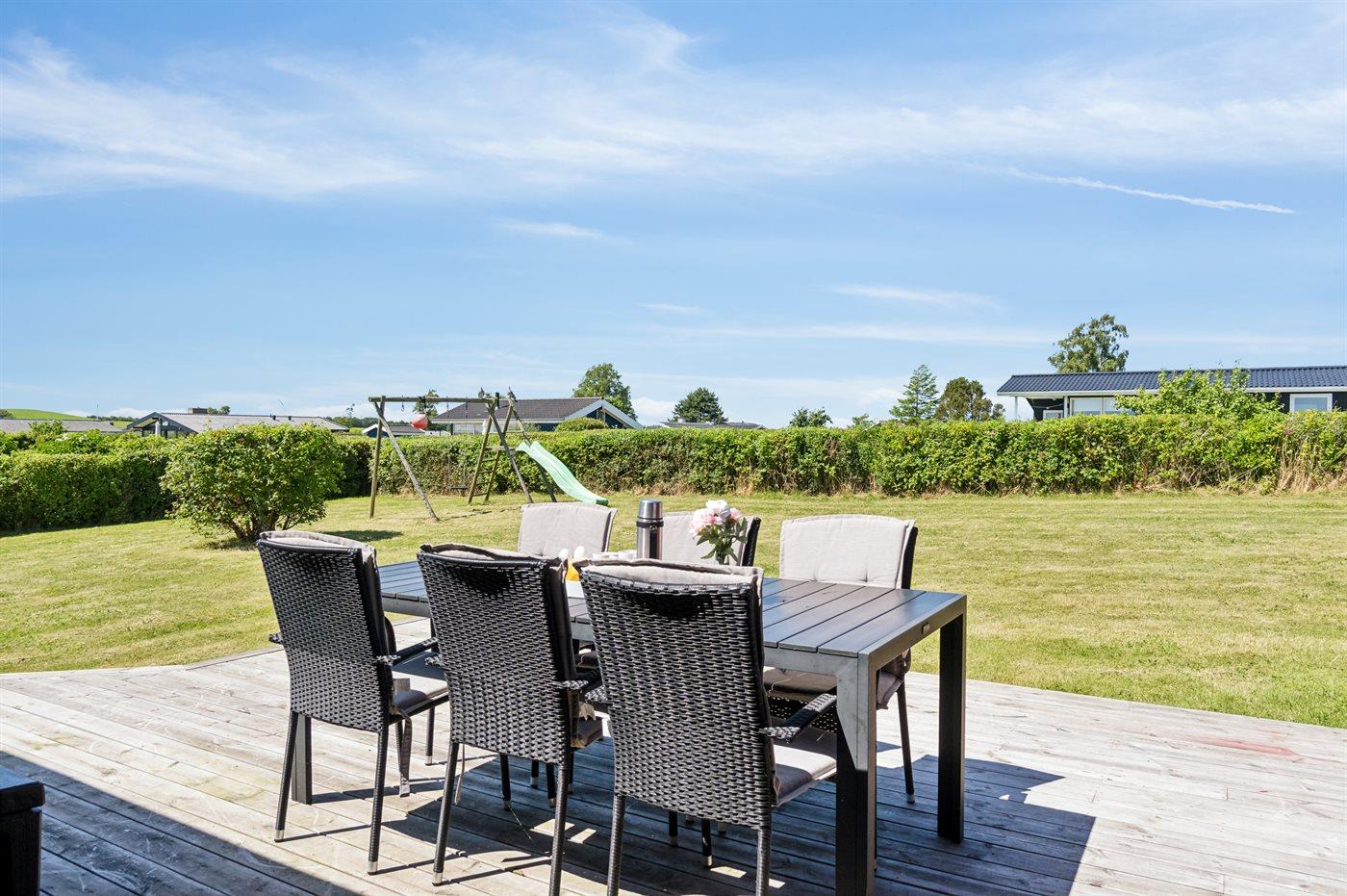 Gemütliches Ferienhaus in Ebeltoft mit Meerblick, großer Terrasse und vielfältigen Outdoor-Aktivitäten für die ganze Familie.