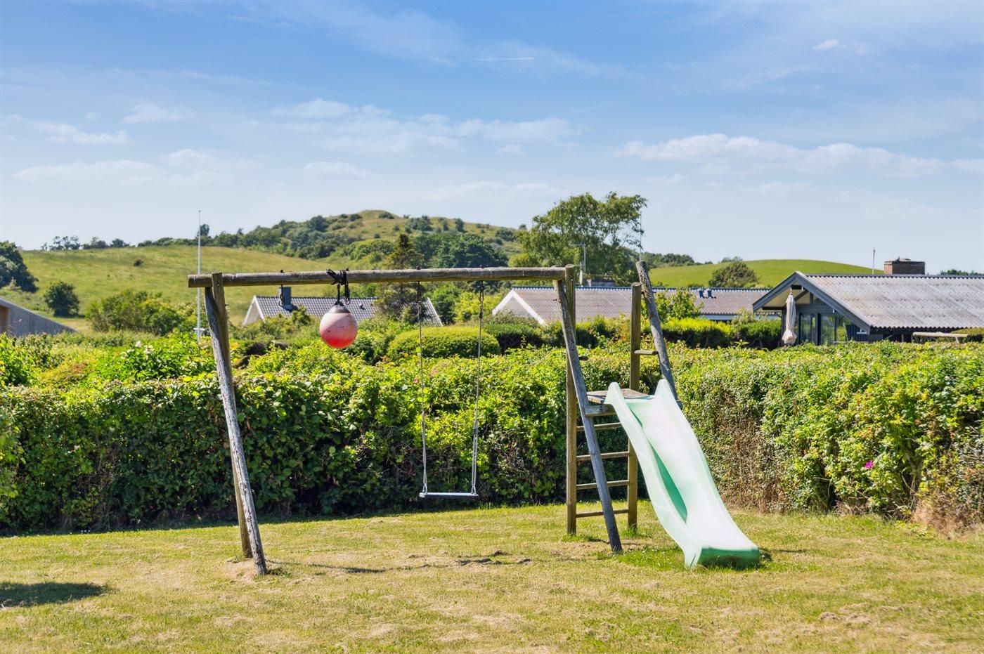 Die Ferienunterkunft liegt auf einem 1200 m² großen Gartengrundstück. Die Entfernung zum Meer beträgt 500 m. Die nächste Einkaufsmöglichkeit liegt 2500 m entfernt. Es steht ein offenes Terrassenareal zur Verfügung. Schaukel. Sandkasten. Trampolin. Rutsche. Fußballtor. Es steht ein Grill zur Verfügung. Parkplatz auf dem Grundstück.