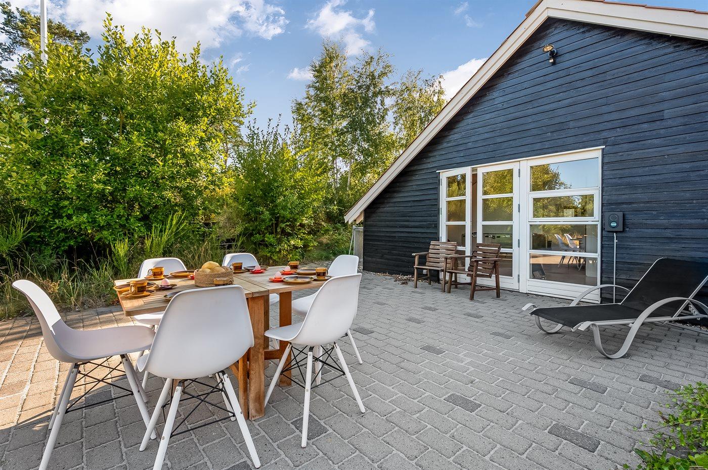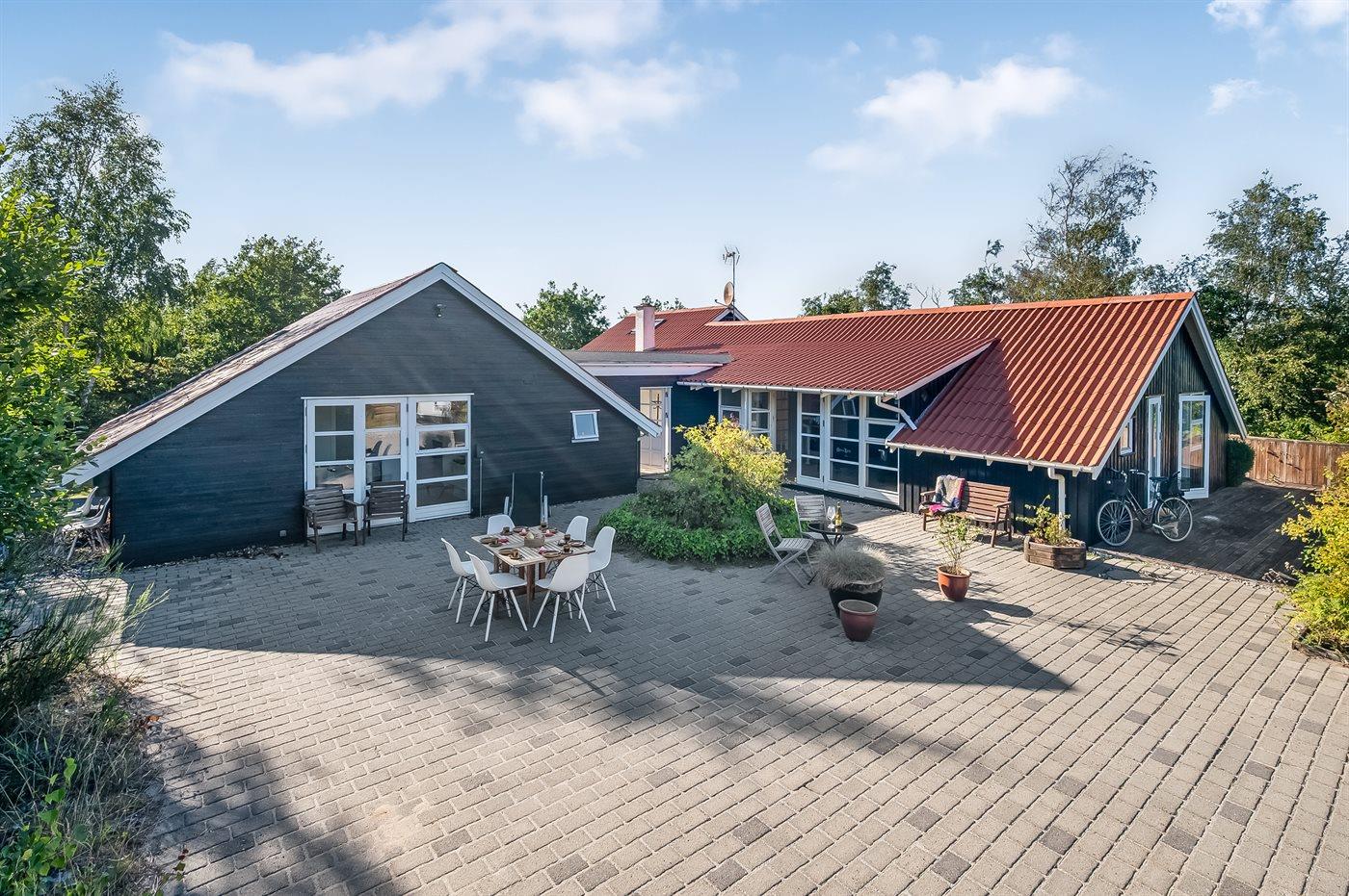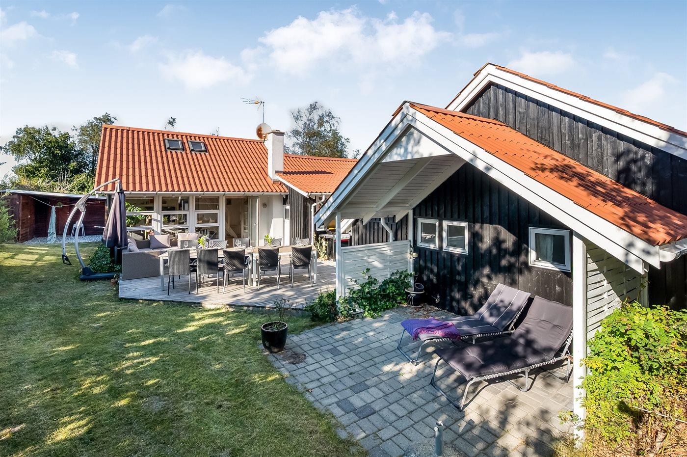 Großes Ferienhaus in Ebeltoft mit 5 Schlafzimmern, Hobbyraum, Garten und mehreren Terrassen für einen erholsamen Familienurlaub.