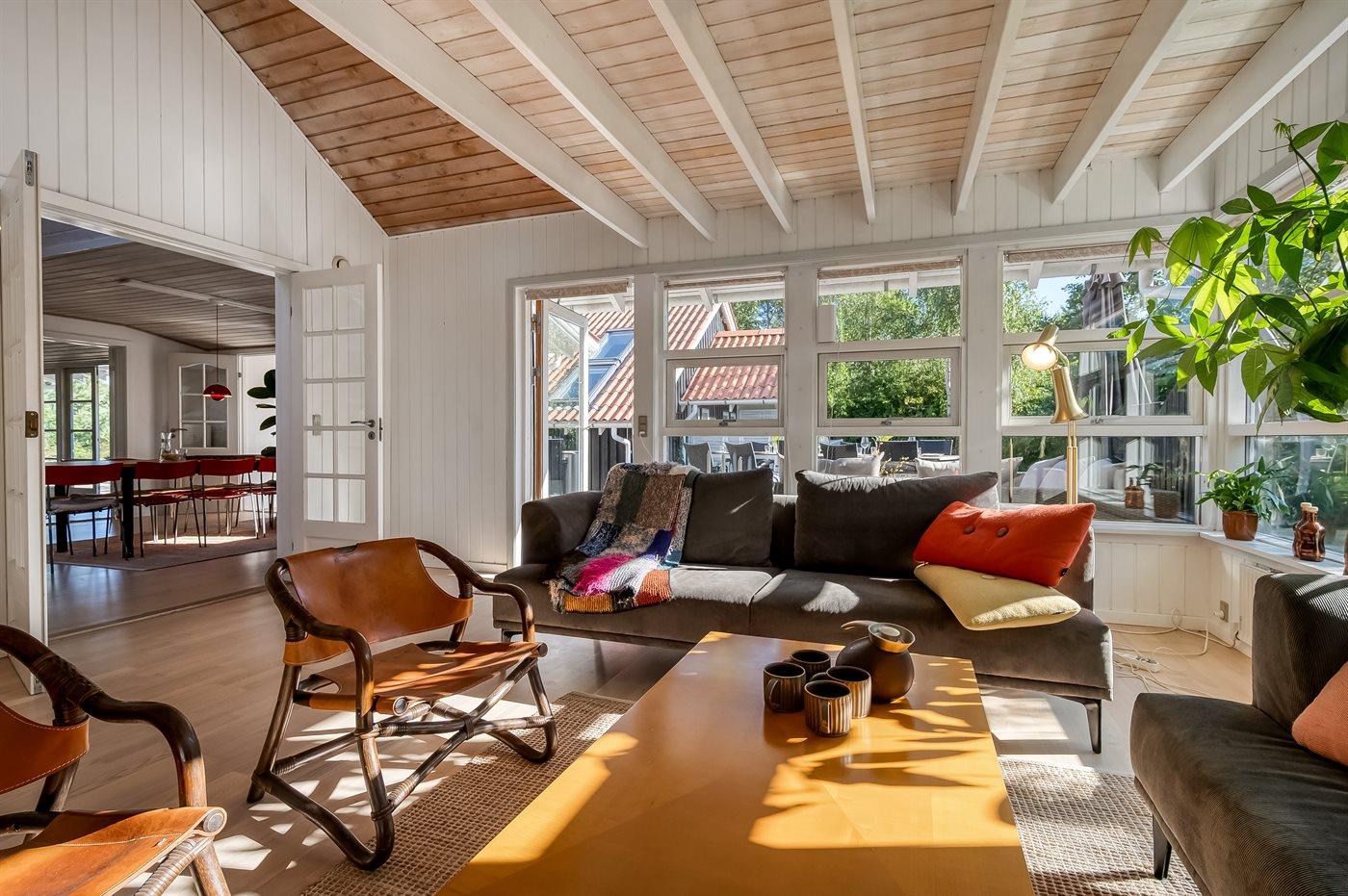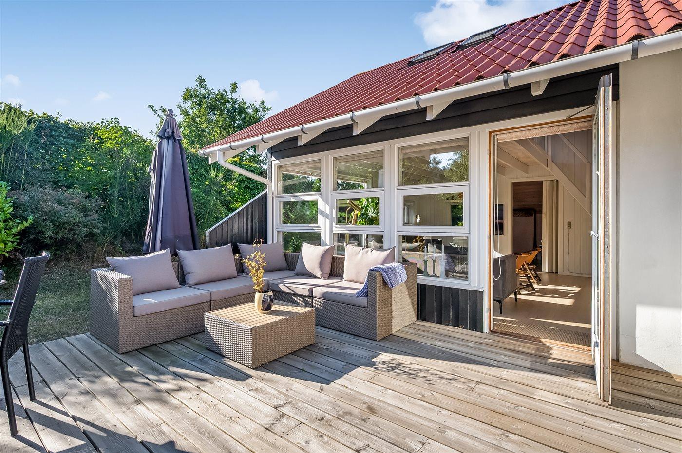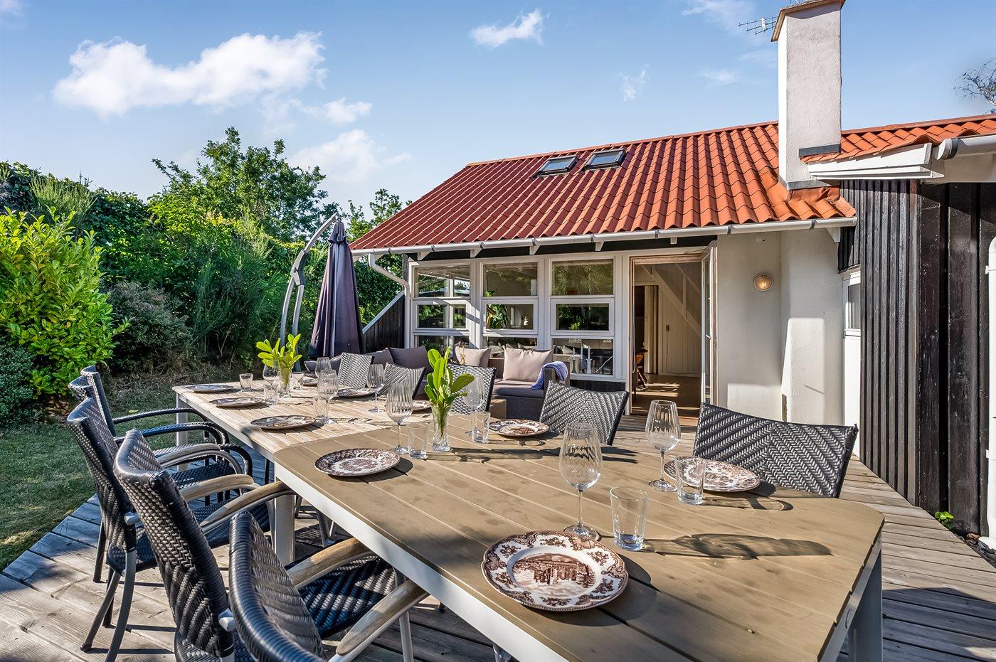 Großes Ferienhaus in Ebeltoft mit 5 Schlafzimmern, Hobbyraum, Garten und mehreren Terrassen für einen erholsamen Familienurlaub.