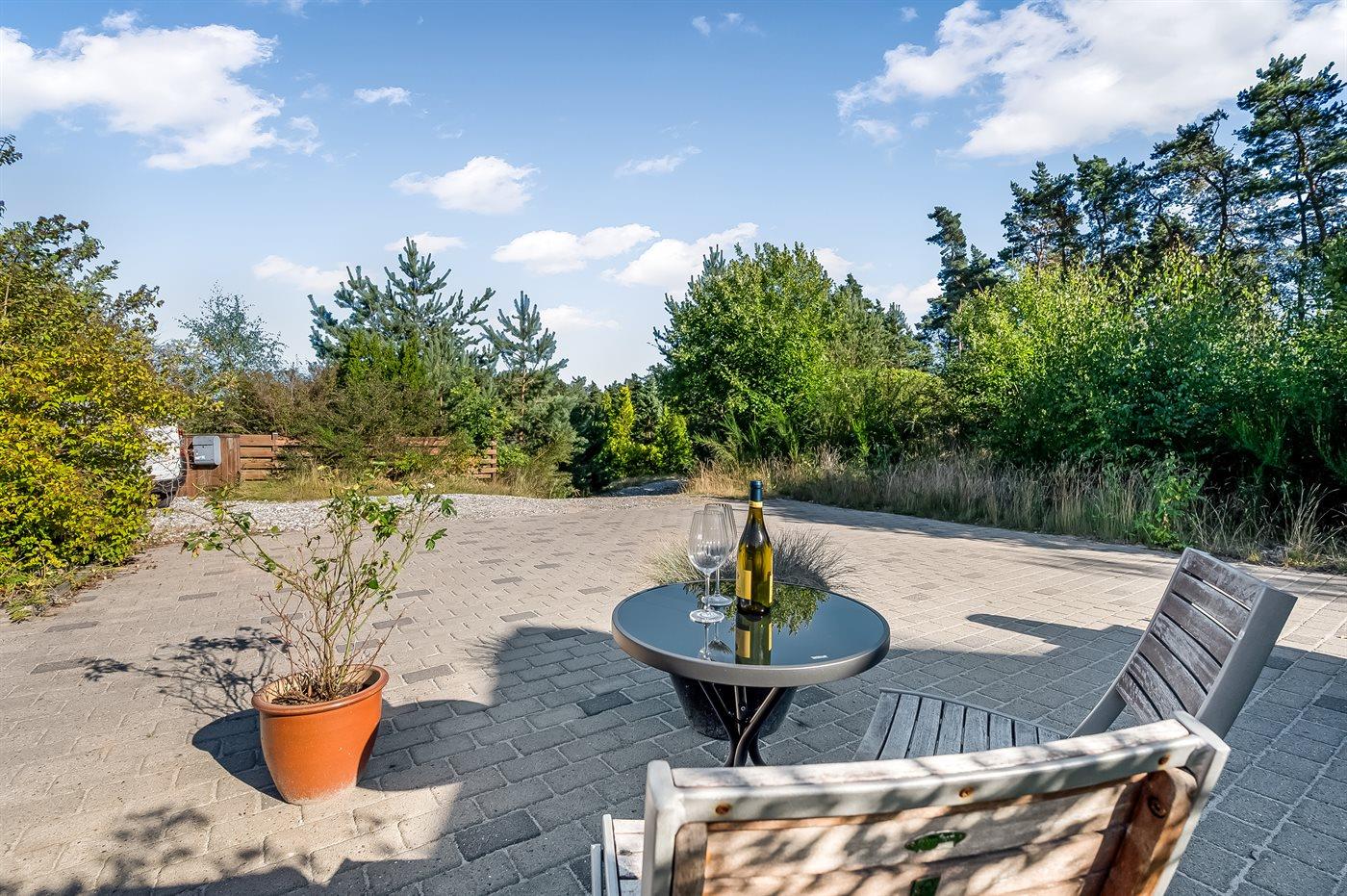 Die Ferienunterkunft liegt auf einem 1647 m² großen Naturgrundstück. Die Entfernung zum Meer beträgt 1000 m. Die nächste Einkaufsmöglichkeit liegt 800 m entfernt. Es steht ein offenes Terrassenareal zur Verfügung. Außerdem gibt es überdachte Terrasse. Sandkasten. Petanque. Es steht ein Grill zur Verfügung. Parkplatz auf dem Grundstück.