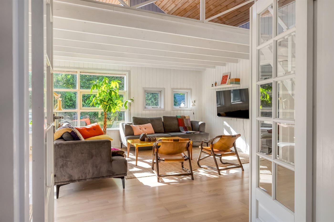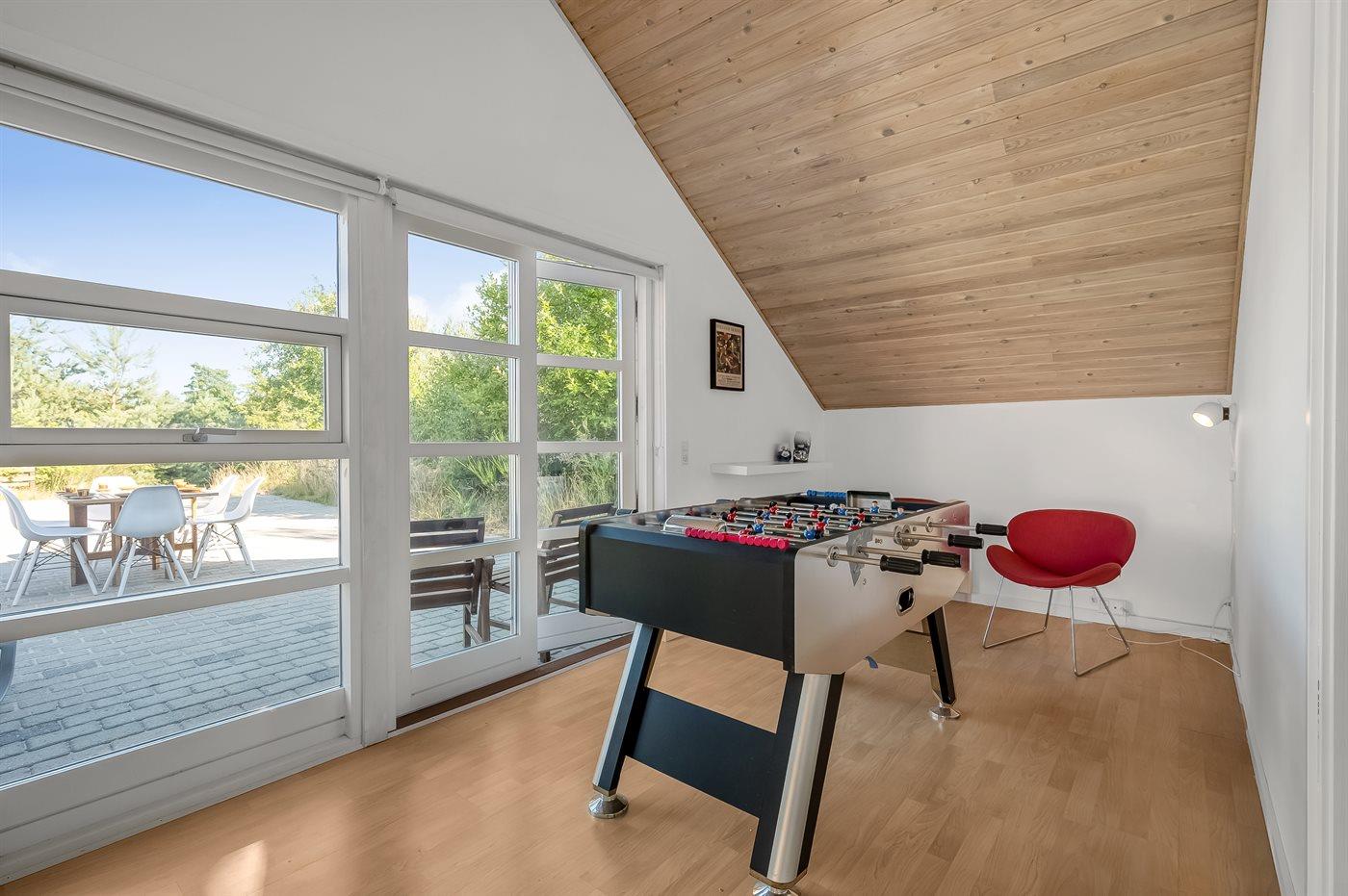 Hier findest du das ideale Ferienhaus, um die Familie zu einer schönen Urlaubswoche zu versammeln. Das Haus verfügt über 5 große Schlafzimmer sowie ein offenes Obergeschoss mit hoher Decke. Alle Räume sind mit guten Betten ausgestattet und bieten ausreichend Platz für alle. Die Schlafzimmer liegen gleichmäßig verteilt an beiden Enden des Hauses, jeweils mit dem Badezimmer, was viel Raum sowohl für gemeinsames Zusammensein als auch für Privatsphäre schafft.