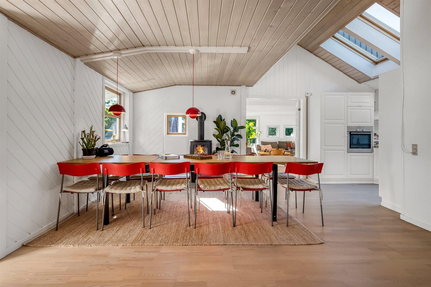 Im Zentrum des Hauses befindet sich die große Küche, die offen mit dem Essbereich verbunden ist und direkten Zugang sowohl zum Aktivitätsraum als auch zum großzügigen Wohnzimmer bietet. Draußen erwarten dich mehrere schöne Terrassen – teils überdacht, teils offen – auf beiden Seiten des Hauses, sodass du je nach Bedarf immer ein Plätzchen mit Windschutz, Sonne oder Schatten findest.