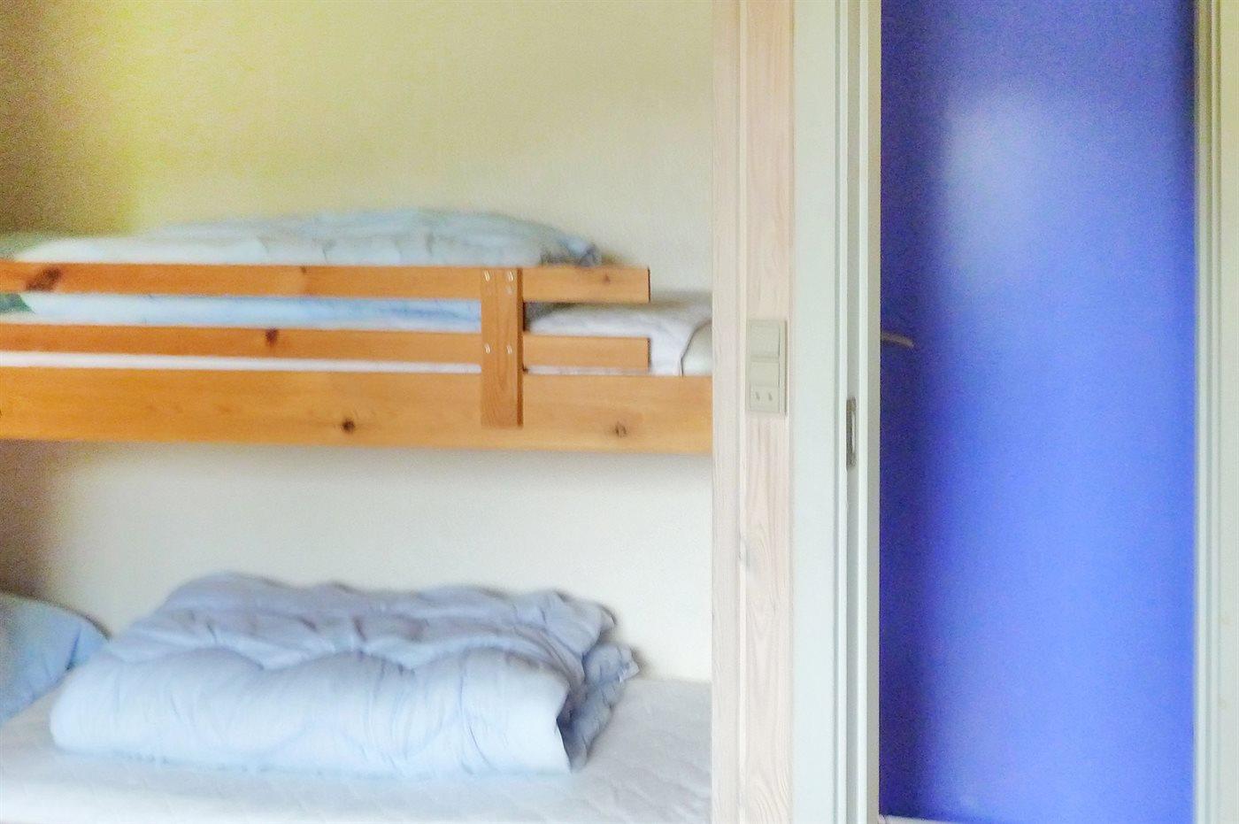 Die Schlafplätze verteilen sich auf 3 Schlafräume. 4 Schlafplätze in Doppelbetten. 4 Schlafplätze in Etagenbetten. Ferner steht ein Kinderbett zur Verfügung.