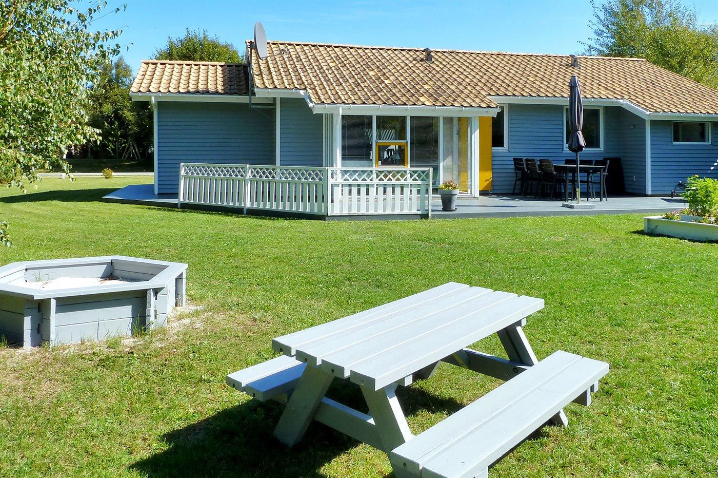 Die Ferienunterkunft liegt auf einem 1228 m² großen Naturgrundstück. Die Entfernung zum Meer beträgt 400 m. Die nächste Einkaufsmöglichkeit liegt 600 m entfernt. Es steht ein 70 m² Terrassenareal zur Verfügung. Geräteraum. Schaukel. Sandkasten. Parkplatz auf dem Grundstück.