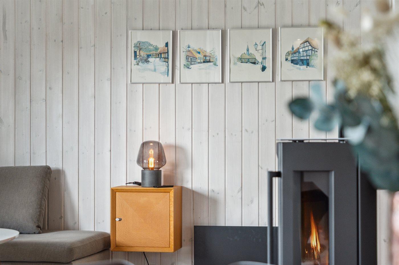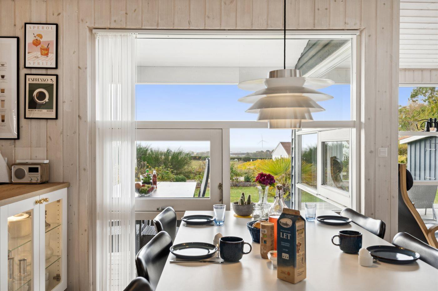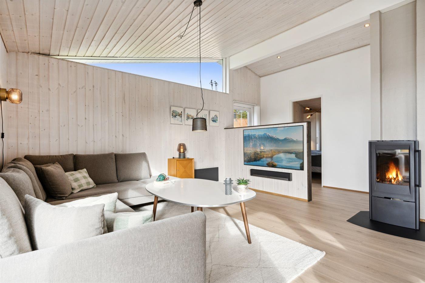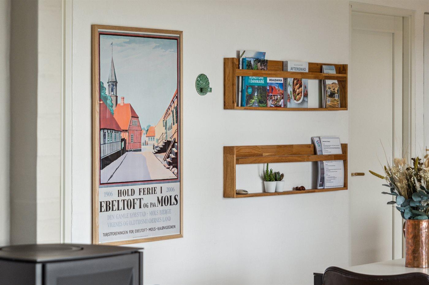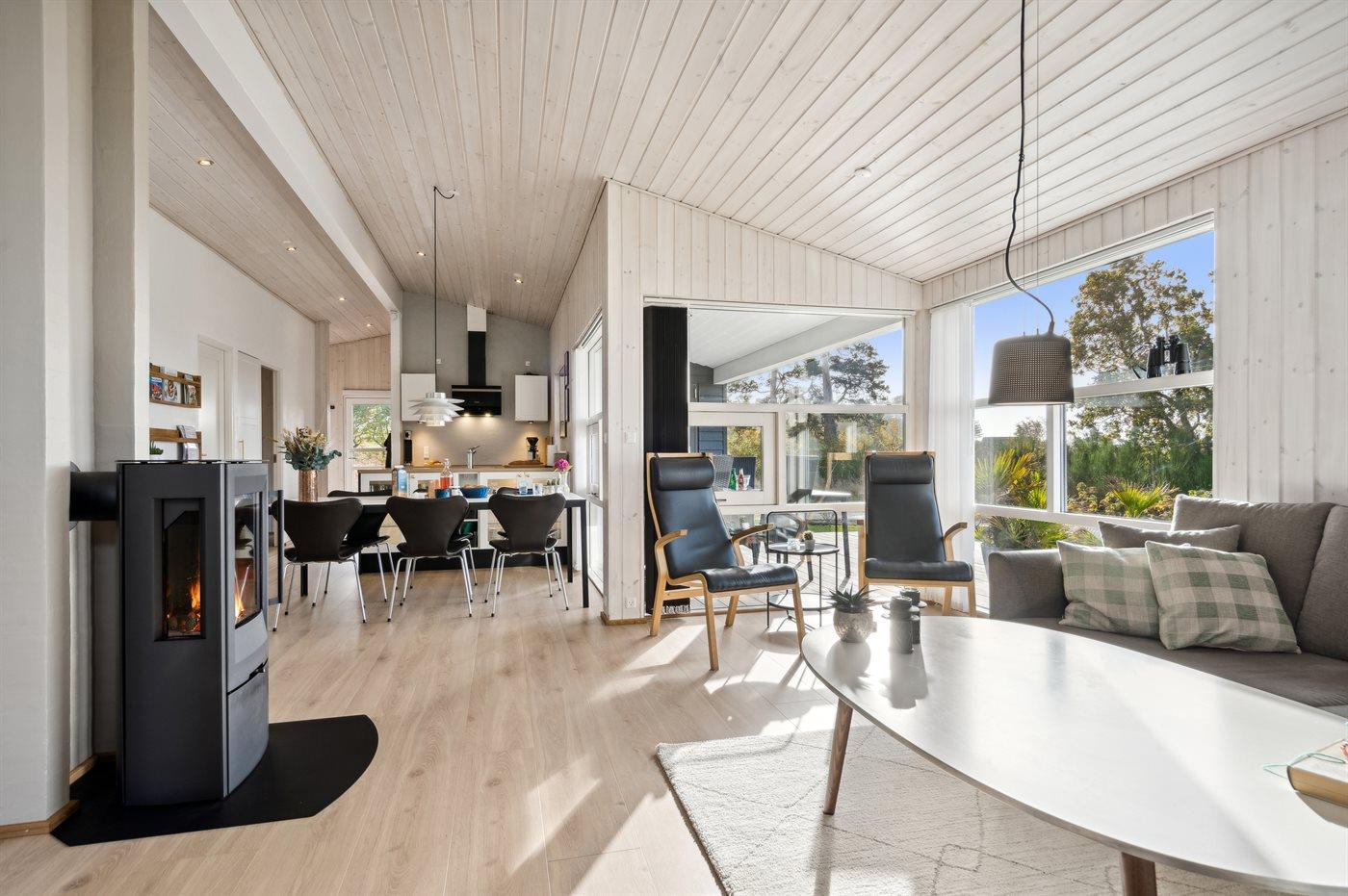 Ein schönes und hell eingerichtetes Ferienhaus mit viel Platz, das sich auf einem offenen Grundstück, mit Ausblick auf das Meer, befindet. Das Haus liegt am Rande einer kleineren ruhigen Ferienhaussiedlung, gleich außerhalb von Ebeltoft und nahe an der Fähre Ebeltoft-Odden.