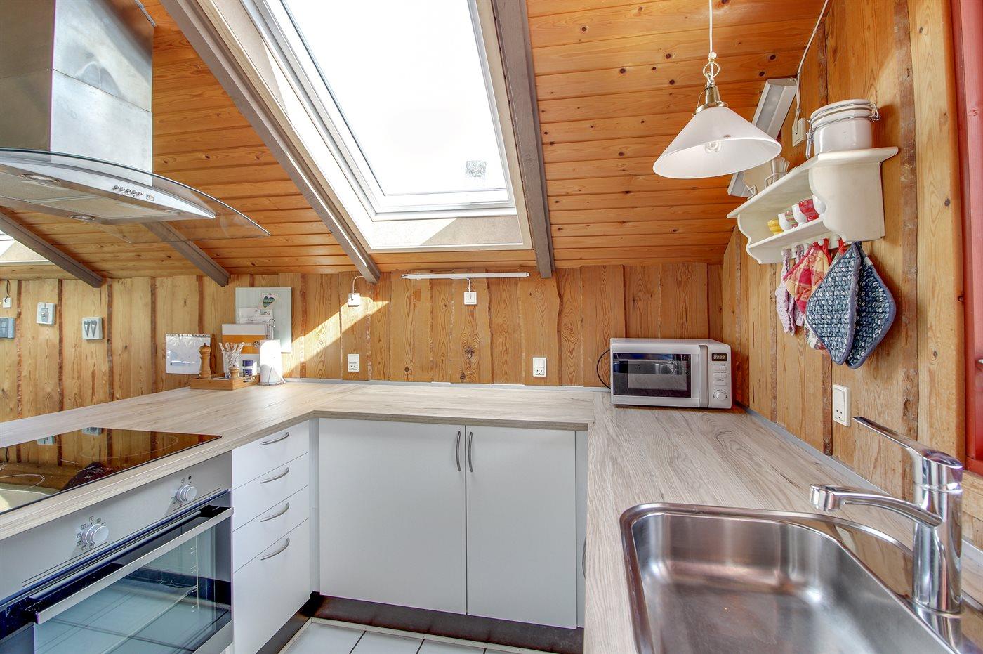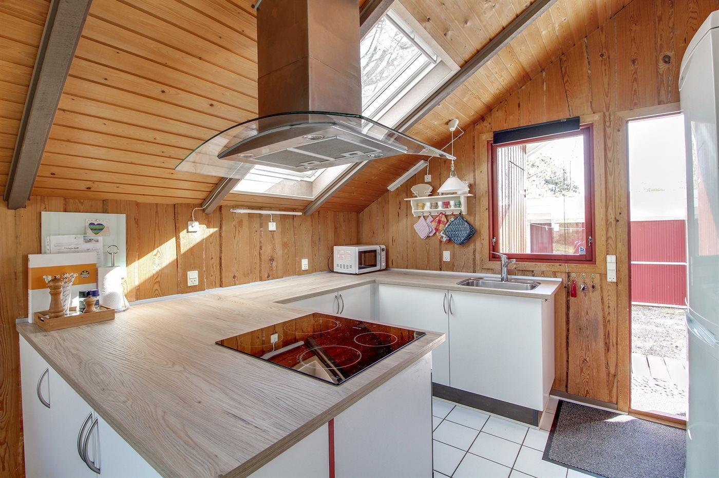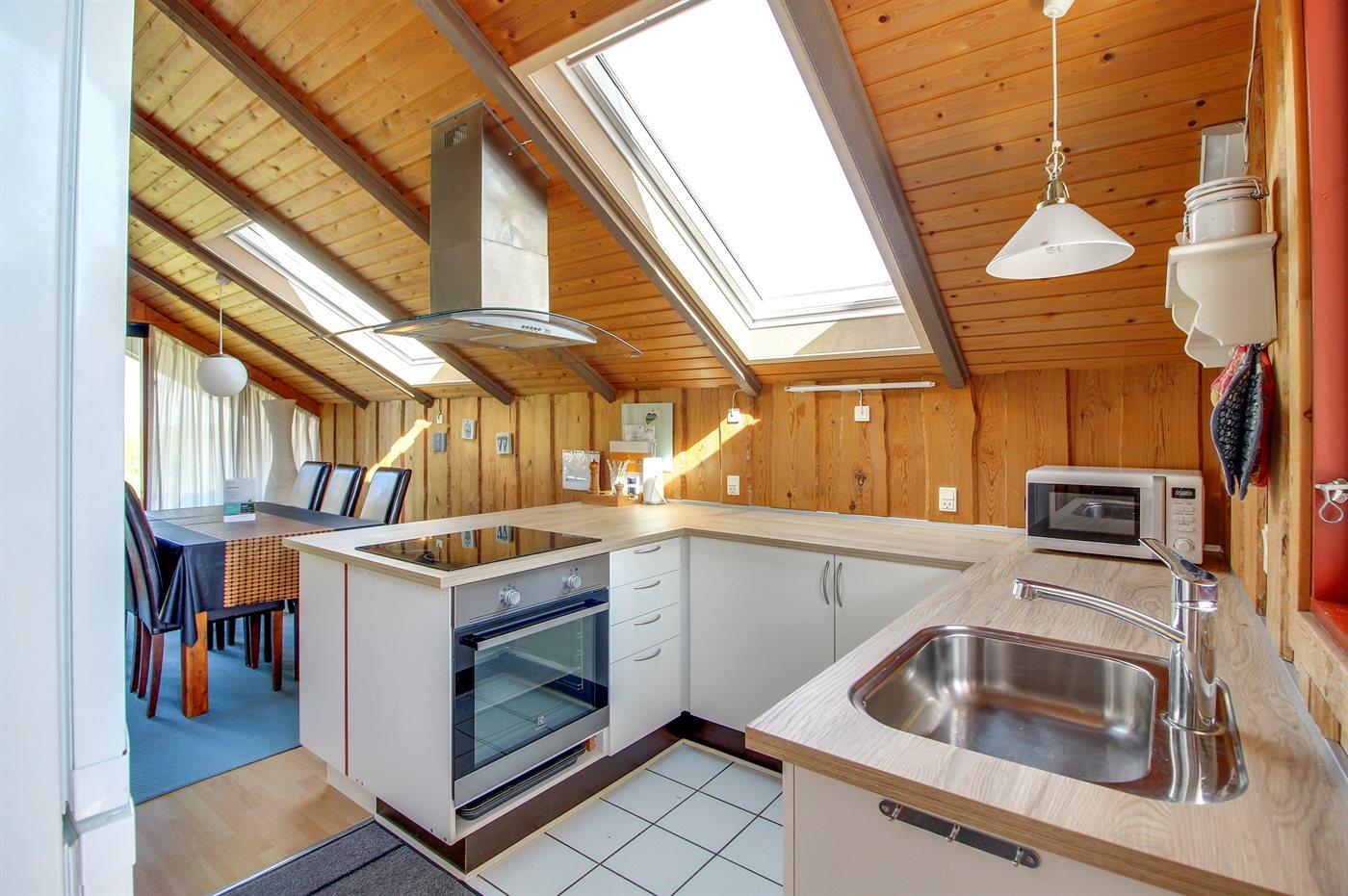 Gemütliches Ferienhaus in Ebeltoft mit moderner Küche und teilweiser Wasserblick, ideal für Familien mit Kindern und Haustieren.