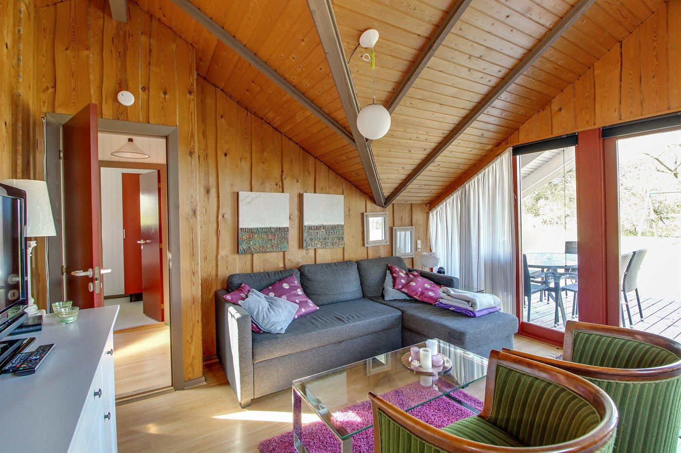 Ein gemütliches, kleineres Ferienhaus hoch gelegen auf einem zurückgezogenen Grundstück mit teilweiser Aussicht über das Wasser.