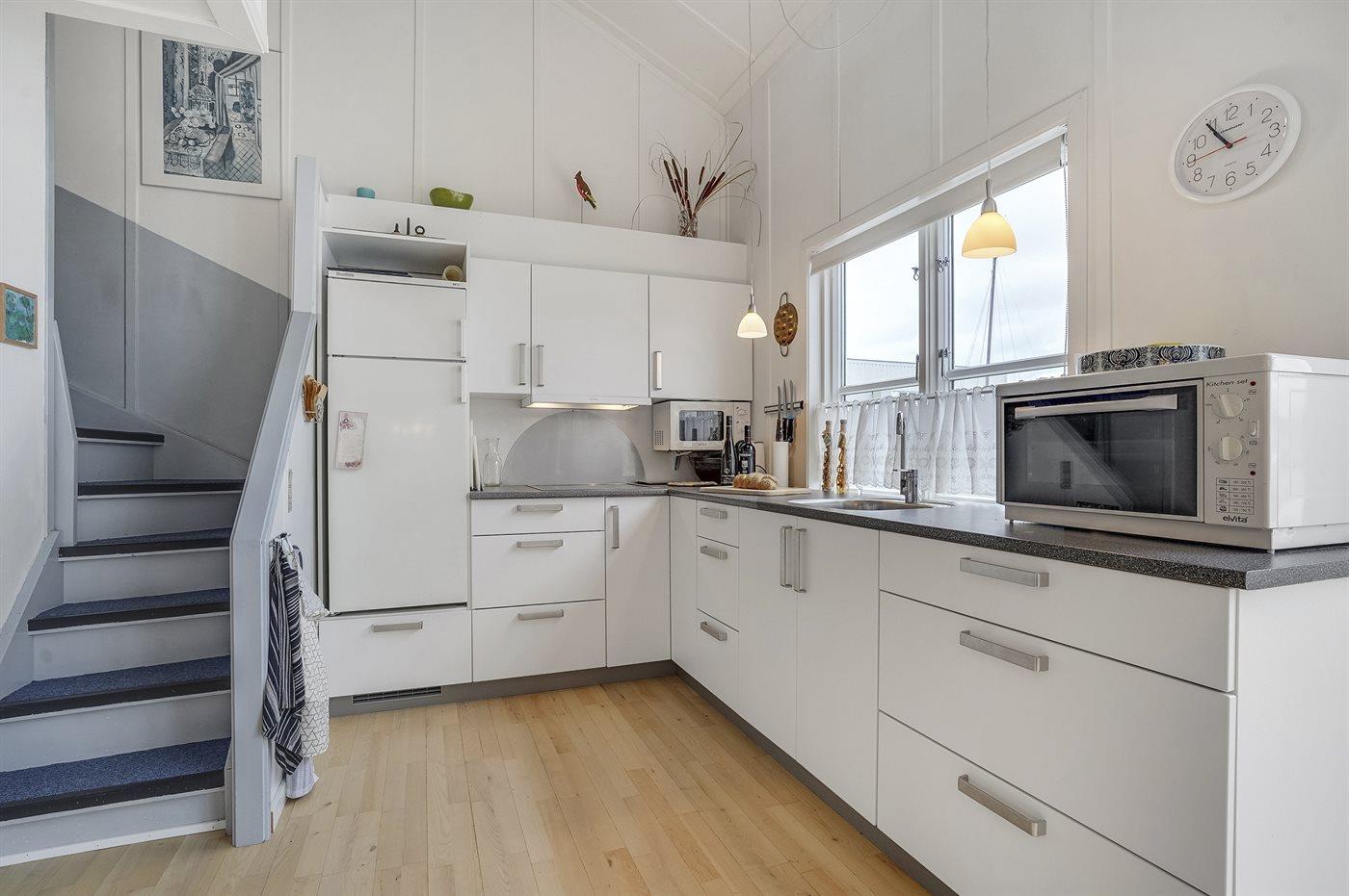 Die Küche ist mit Kühlschrank ausgestattet. Außerdem gibt es 4 Keramik-Kochfelder, Minibackofen, Mikrowelle sowie Geschirrspüler.