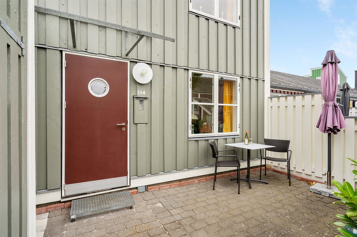 Die Ferienunterkunft liegt auf einem 150 m² großen Naturgrundstück. Die Entfernung zum Meer beträgt 5 m. Die nächste Einkaufsmöglichkeit liegt 300 m entfernt. Es steht ein 30 m² Terrassenareal zur Verfügung. Parkplatz auf dem Grundstück.