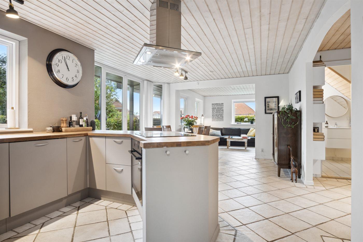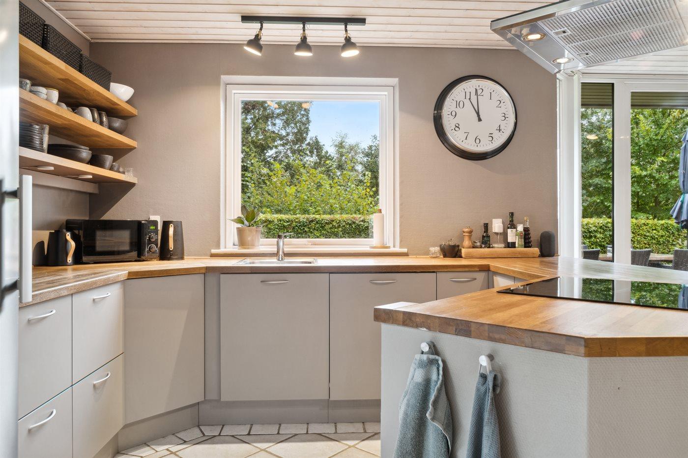 Dieses schöne Familienhaus liegt zentral und daher auch in der Nähe von den verschiedenen Aktivitetsmöglichkeiten, Einkaufsmöglichkeiten u. a. m., die die Stadt Ebeltoft anzubieten hat. Das Haus liegt am Ende einer Sackgasse und verfügt über einen eingezäunten Garten, in dem Sie den Sommer in Ruhe genießen können. In der schönen und großen Wohnküche kann sich die ganze Familie versammeln und den Urlaub gemeinsam genießen.
