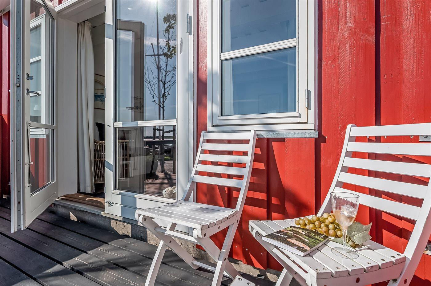 Vom Haus aus können Sie den atemberaubenden Blick auf das Wasser und die lebhafte Hafenumgebung aus drei Himmelsrichtungen genießen. Die private, geschlossene Terrasse ist ein friedlicher Zufluchtsort – hier können Sie sich ganz einfach nur Entspannen und die frische Meeresluft einatmen, ein gutes Buch lesen oder ein Glas Wein genießen.