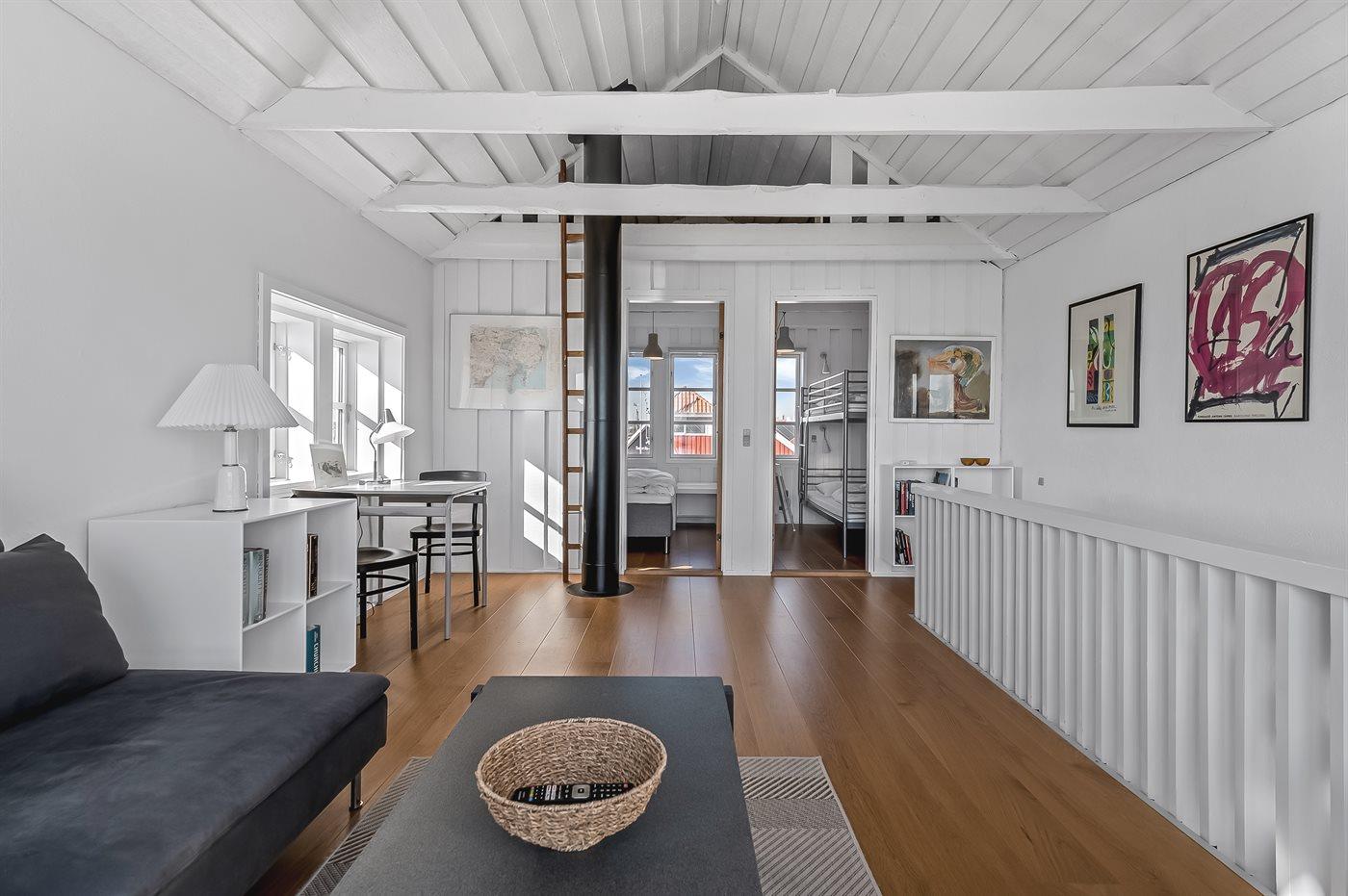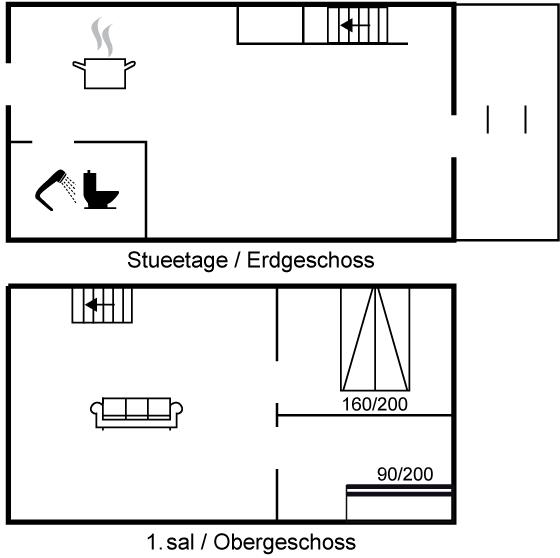 Die Wohnfläche verteilt sich auf 2 Ebenen, wobei sich die moderne und gut ausgestattete Wohnküche, die sich perfekt für gemeinsame Mahlzeiten und gemütliches Beisammensein eignet im Erdgeschoss befindet. Im Obergeschoss finden Sie ein geräumiges und komfortabel eingerichtetes Wohnzimmer, sowie zwei gemütliche Schlafzimmer und ein offenes Obergeschoss. Mit Platz für bis zu sechs Personen ist dieses Ferienhaus für einen Urlaub mit der Familie geradezu Ideal.