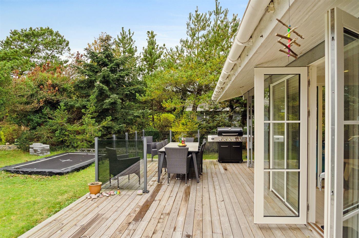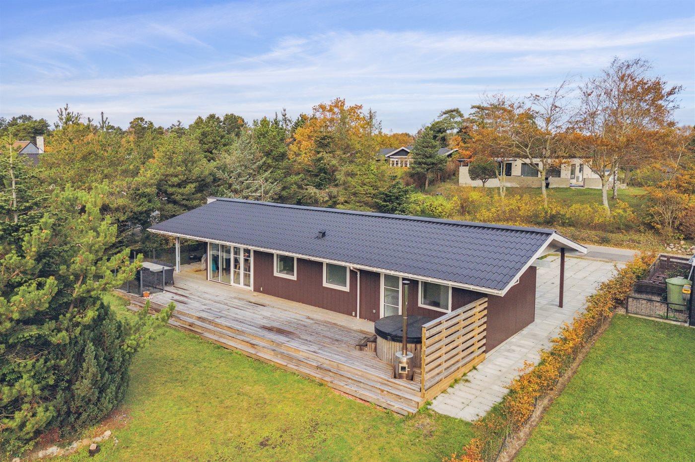 Die Ferienunterkunft liegt auf einem 1200 m² großen Naturgrundstück. Die Entfernung zum Meer beträgt 250 m. Die nächste Einkaufsmöglichkeit liegt 100 m entfernt. Es steht ein offenes Terrassenareal zur Verfügung. Außerdem gibt es überdachte Terrasse. Trampolin. Fußballtor. Es steht ein Grill zur Verfügung. Es ist ein Ladestecker für Elektroautos installiert. Parkplatz auf dem Grundstück.
