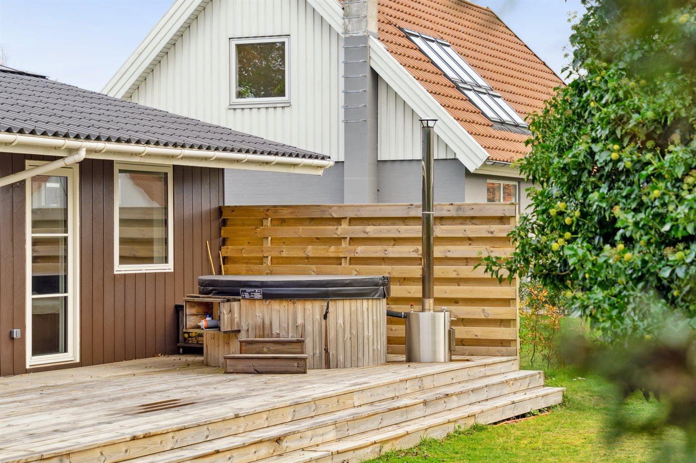 Modernes, renoviertes Ferienhaus mit großem Garten und Whirlpool, nur 250 m vom Meer in Ebeltoft entfernt.