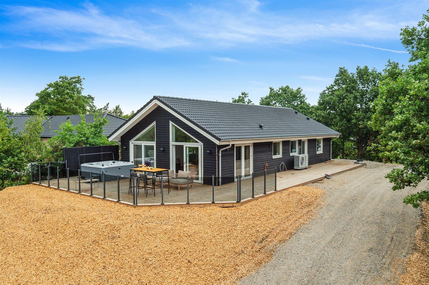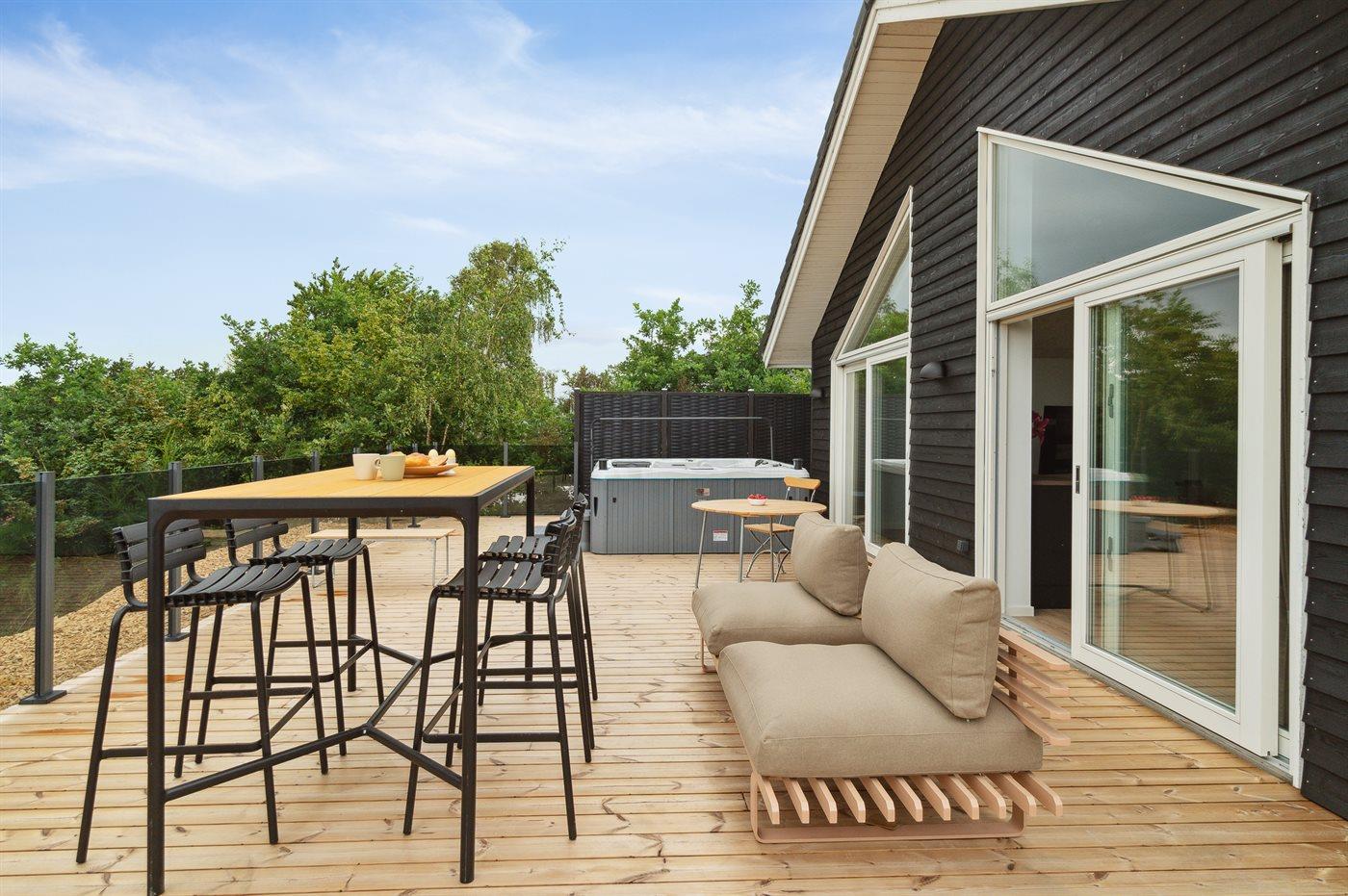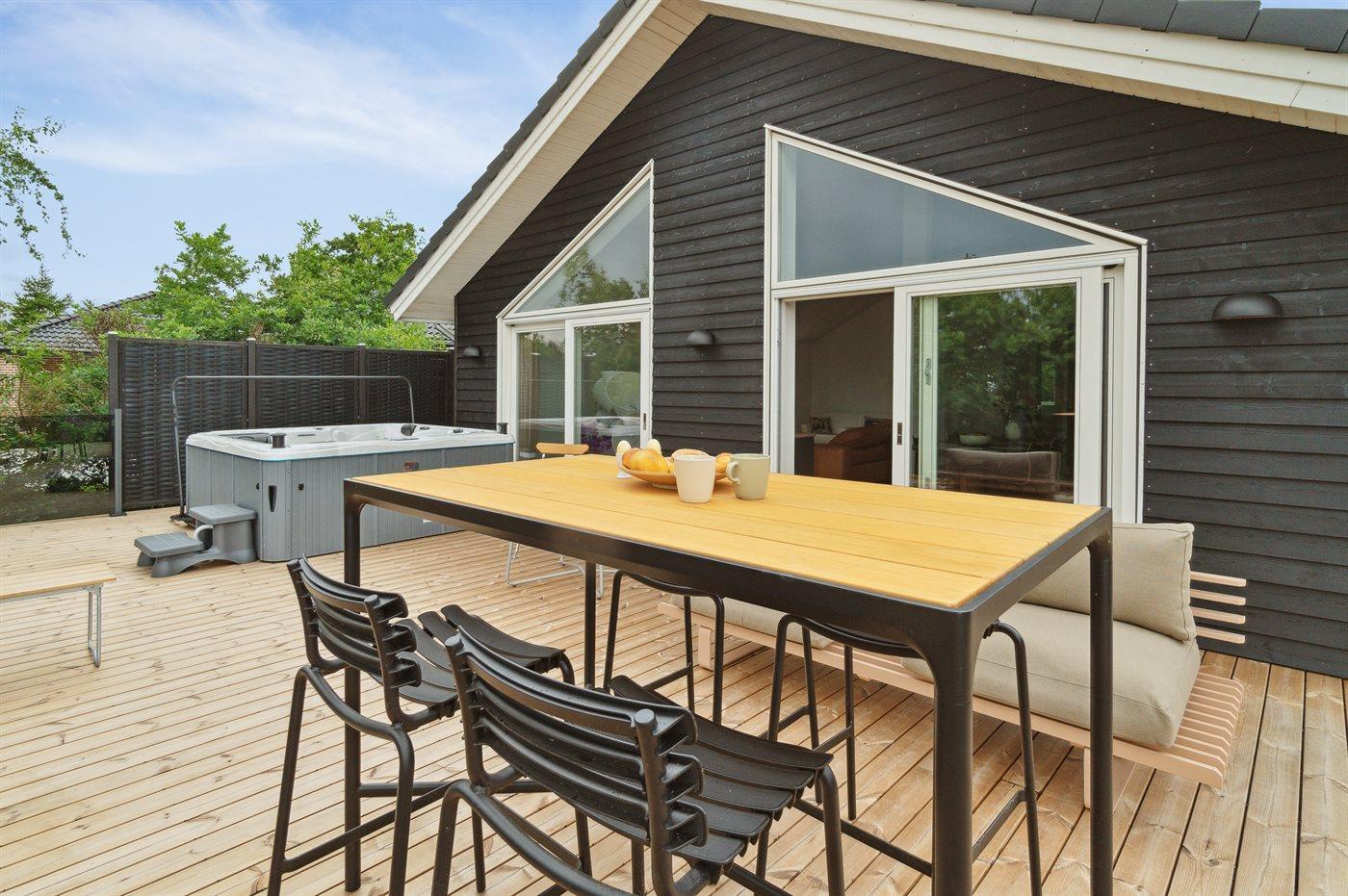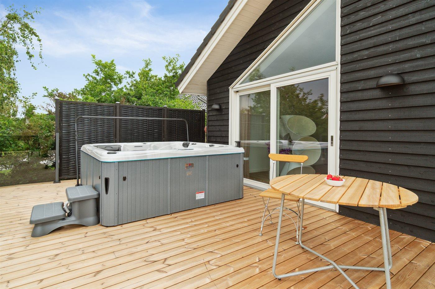 Modernes, energieeffizientes Ferienhaus mit Whirlpool und Meerblick, nur 150 m vom Strand in Ebeltoft, Dänemark entfernt.