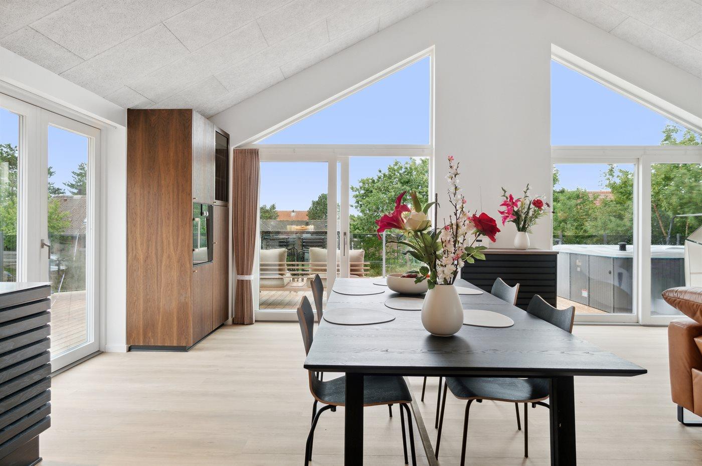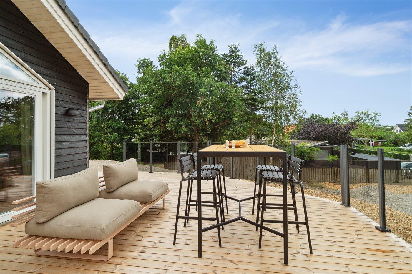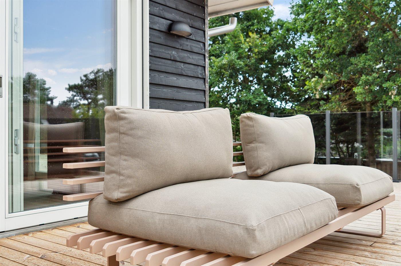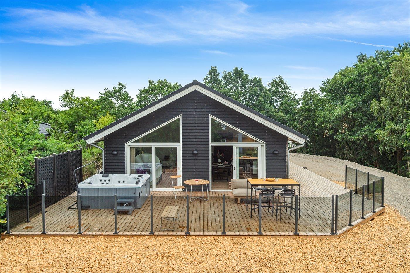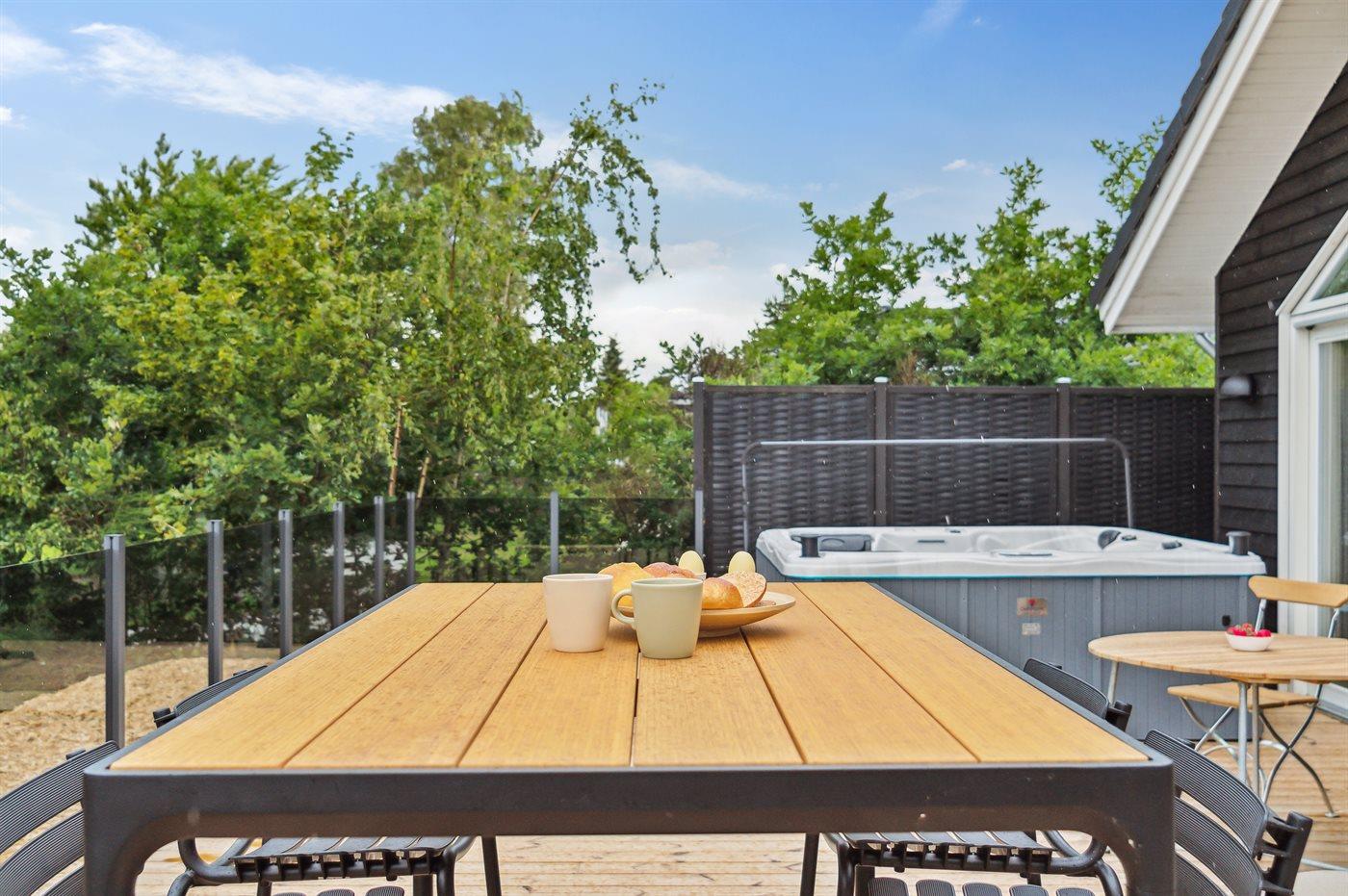 Modernes, energieeffizientes Ferienhaus mit Whirlpool und Meerblick, nur 150 m vom Strand in Ebeltoft, Dänemark entfernt.