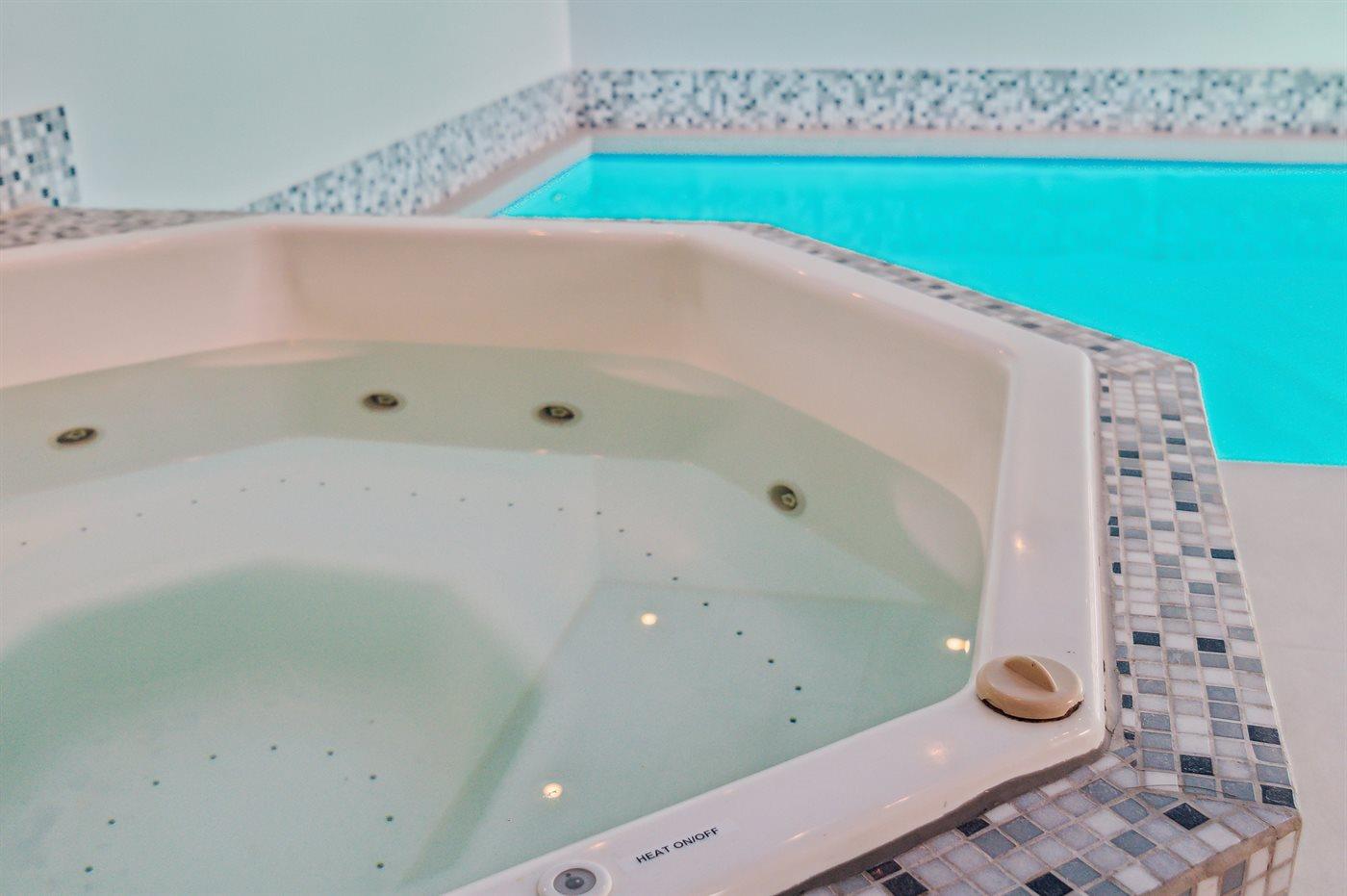 Entspannen Sie sich im Innen-Standwasser-Whirlpool für 5 Personen.