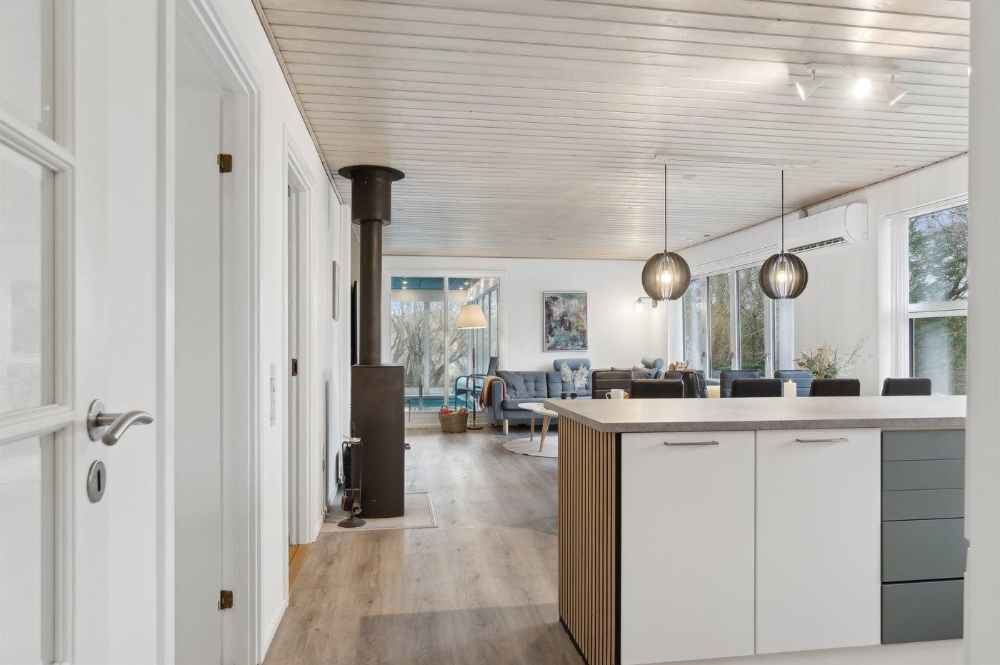 Das Haus eignet sich für 8 Personen und zeichnet sich durch seine exklusive Poolabteilung und die fantastische Lage nur wenige Schritte vom schönen Strand “Øer Strand” aus.