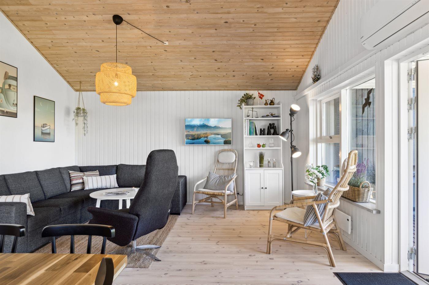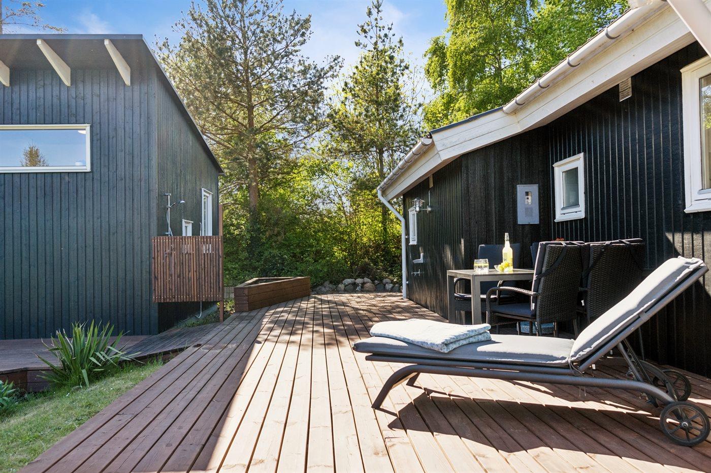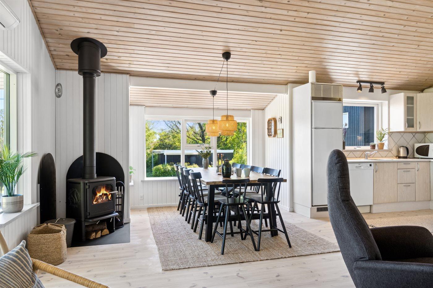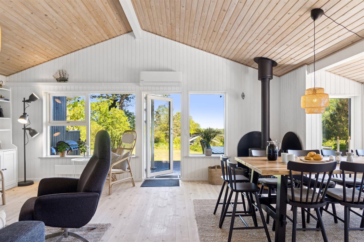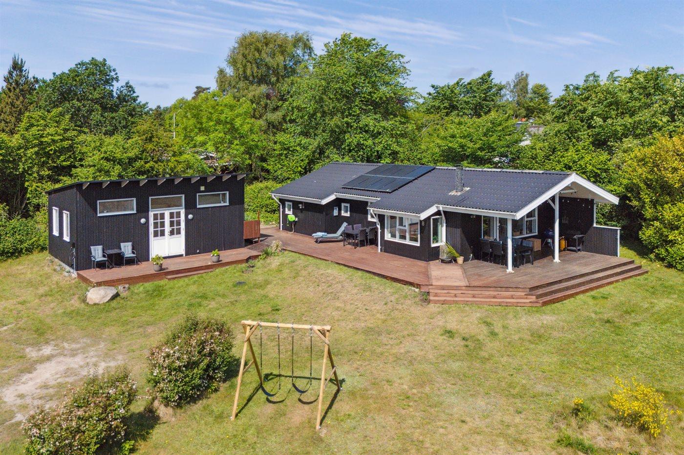 Am Rande von Øer Strand, dort wo die Straße in die Ruhe der Natur übergeht, liegt dieses wunderschöne Ferienhaus auf einem großen, privaten Naturgrundstück am Ende einer Sackgasse. Hier kannst du einen erholsamen Urlaub genießen, umgeben von wunderschöner Natur mit Blick von der Terrasse auf Wälder und offene Felder. Besonders der Sonnenaufgang schafft eine idyllische Atmosphäre, wenn das Licht langsam die Landschaft erhellt.