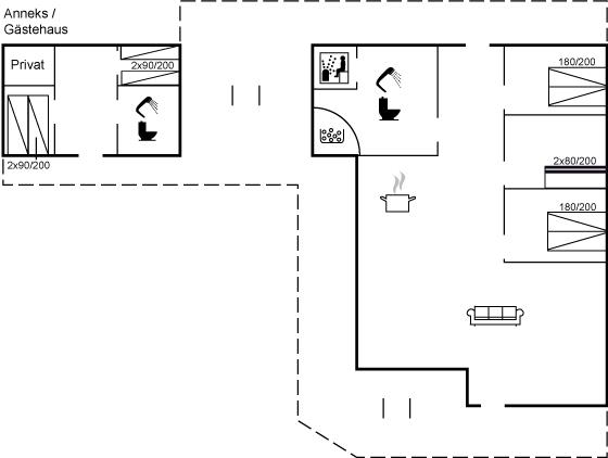 Das Haus bietet insgesamt 94 m² Wohnfläche, einschließlich eines großen Anbaus von 38 m², und ist der perfekte Ausgangspunkt für einen Urlaub mit der ganzen Familie. Mit einem Grundstück von 2.500 m² gibt es viel Platz zum Spielen und Entspannen. Die Kinder können sich im großen Garten frei bewegen, während die Eltern von der Stube oder der Terrasse aus alles im Blick behalten können, die sich um das gesamte Haus erstreckt.