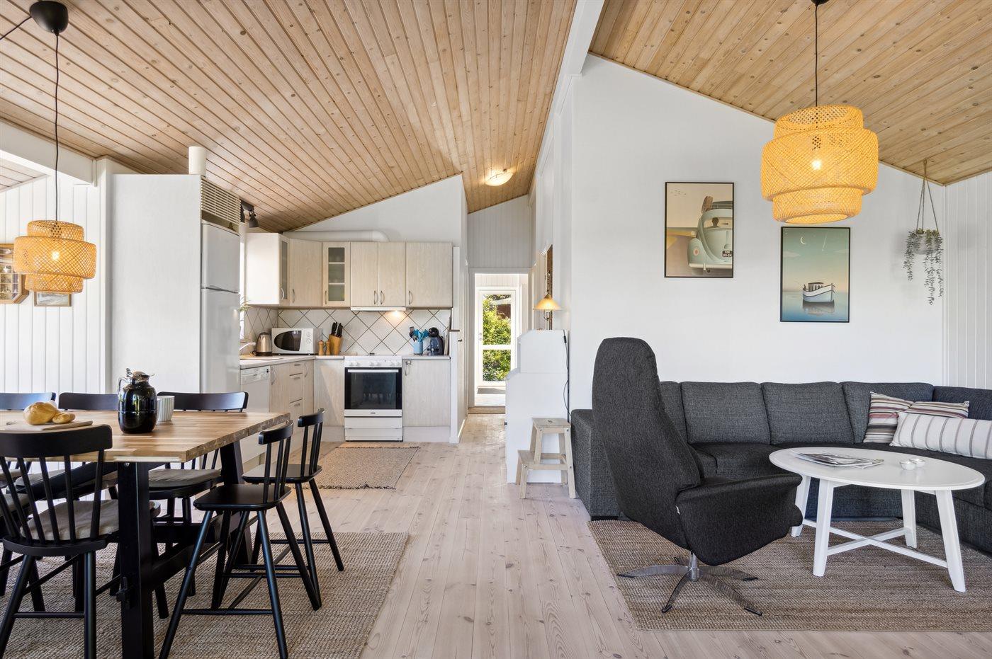 Das Herzstück des Hauses ist der offene Küchen-Wohnbereich, der sich zu einem hellen und einladenden Aufenthaltsraum vereint. Die Küche ist gut ausgestattet mit vier keramischen Kochfeldern, Heißluftofen, Mikrowelle, Geschirrspüler, Kühlschrank mit Gefrierfach, Wasserkocher sowie einer Dolce-Gusto-Kapselkaffeemaschine. Das Wohnzimmer ist mit bequemen Möbeln, einem gemütlichen Kaminofen sowie einem Smart-TV mit Chromecast und Zugang zu dänischen, deutschen, schwedischen und norwegischen Kanälen ausgestattet. Das gesamte Haus verfügt über WLAN.