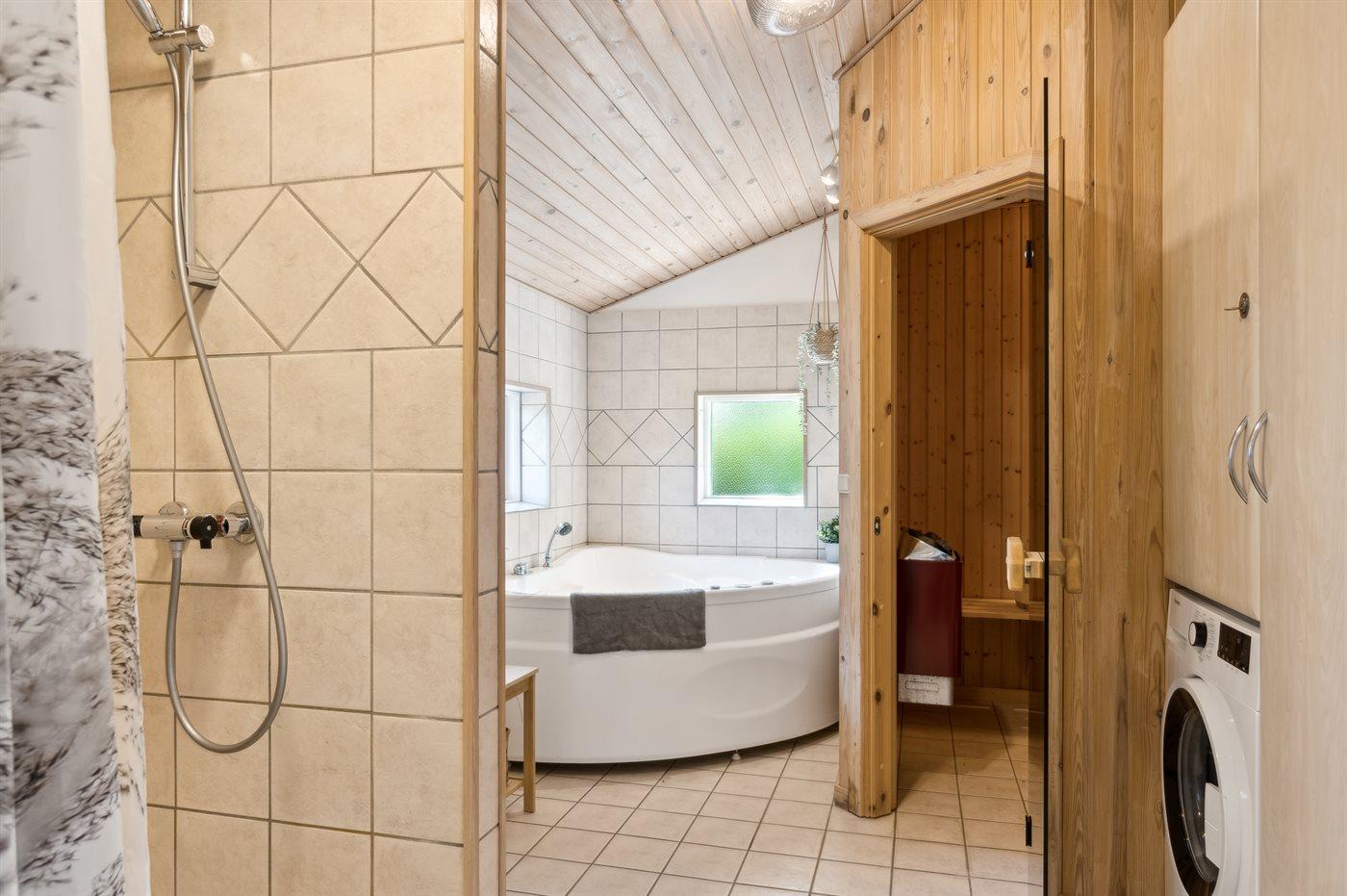 Die Einrichtung umfasst drei schöne Schlafzimmer im Haupthaus – zwei mit Doppelbetten und eines mit Etagenbett. Zudem gibt es ein geräumiges Badezimmer mit Fußbodenheizung, Sauna und Whirlpool. Im Anbau befinden sich zwei weitere Schlafzimmer mit jeweils zwei Einzelbetten sowie ein zusätzliches Badezimmer mit Fußbodenheizung, sodass sich Teile der Familie bei Bedarf zurückziehen können.