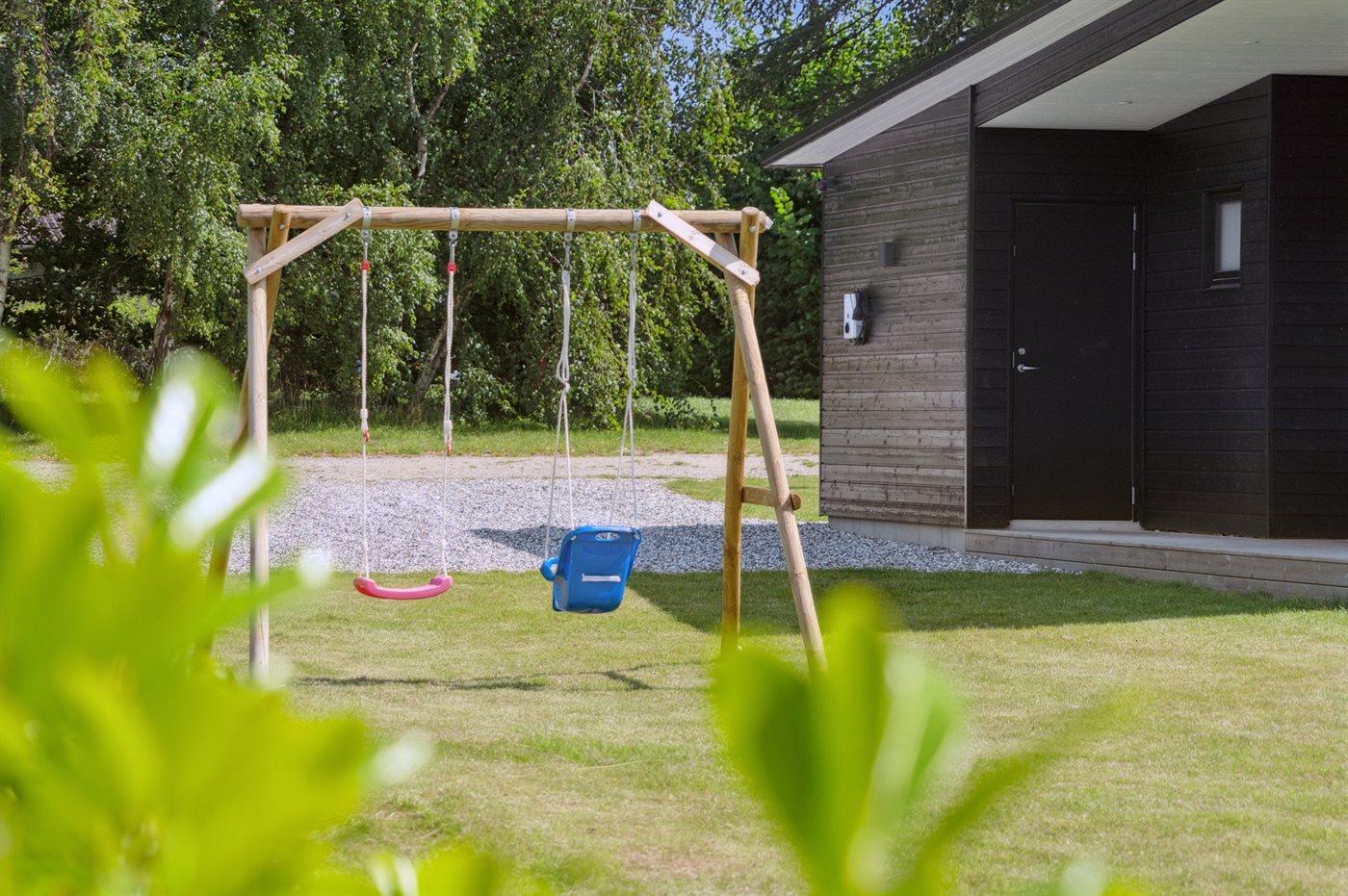 Die Ferienunterkunft liegt auf einem 1722 m² großen Naturgrundstück. Die Entfernung zum Meer beträgt 800 m. Die nächste Einkaufsmöglichkeit liegt 3000 m entfernt. Außerdem gibt es überdachte Terrasse. Geräteraum. Schaukel. Es steht ein Grill zur Verfügung. Es ist ein Ladestecker für Elektroautos installiert. Parkplatz auf dem Grundstück.