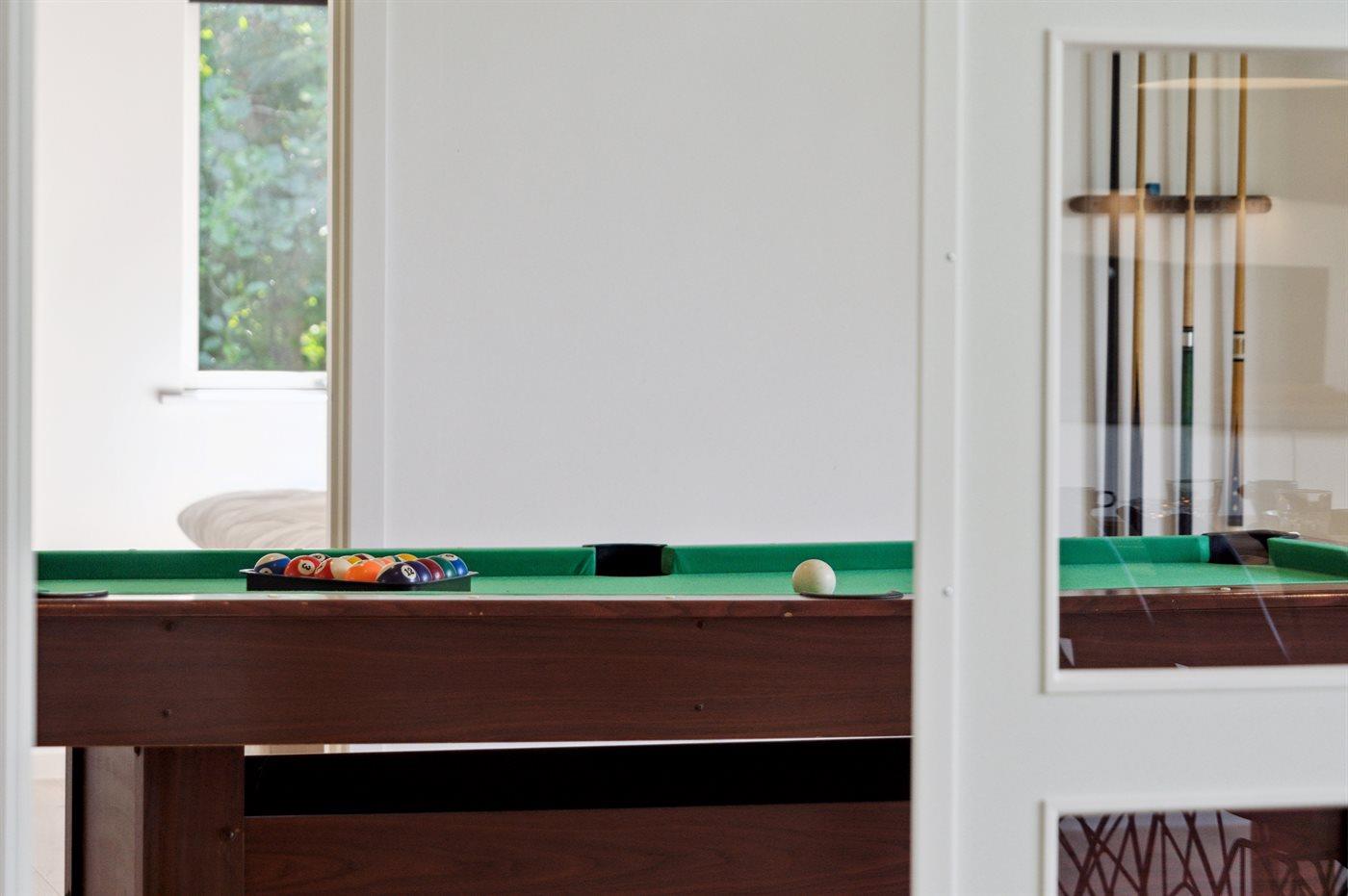 Der große Küchen-Wohnbereich lädt zum gemütlichen Beisammensein rund um den großen Esstisch oder in den schönen Couchen des Hauses ein. Kinder und Junggebliebene können das Aktivitätszimmer nutzen, wo der Billardtisch zu Spiel und Wettbewerb einlädt. Hier steht auch ein zusätzlicher Fernseher zur Verfügung, der leicht an mitgebrachte Spielkonsolen angeschlossen werden kann.