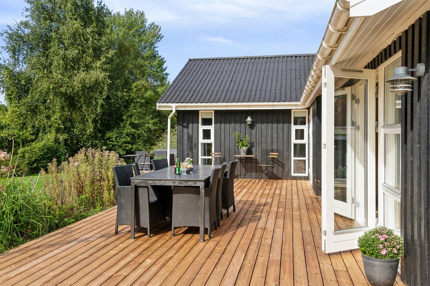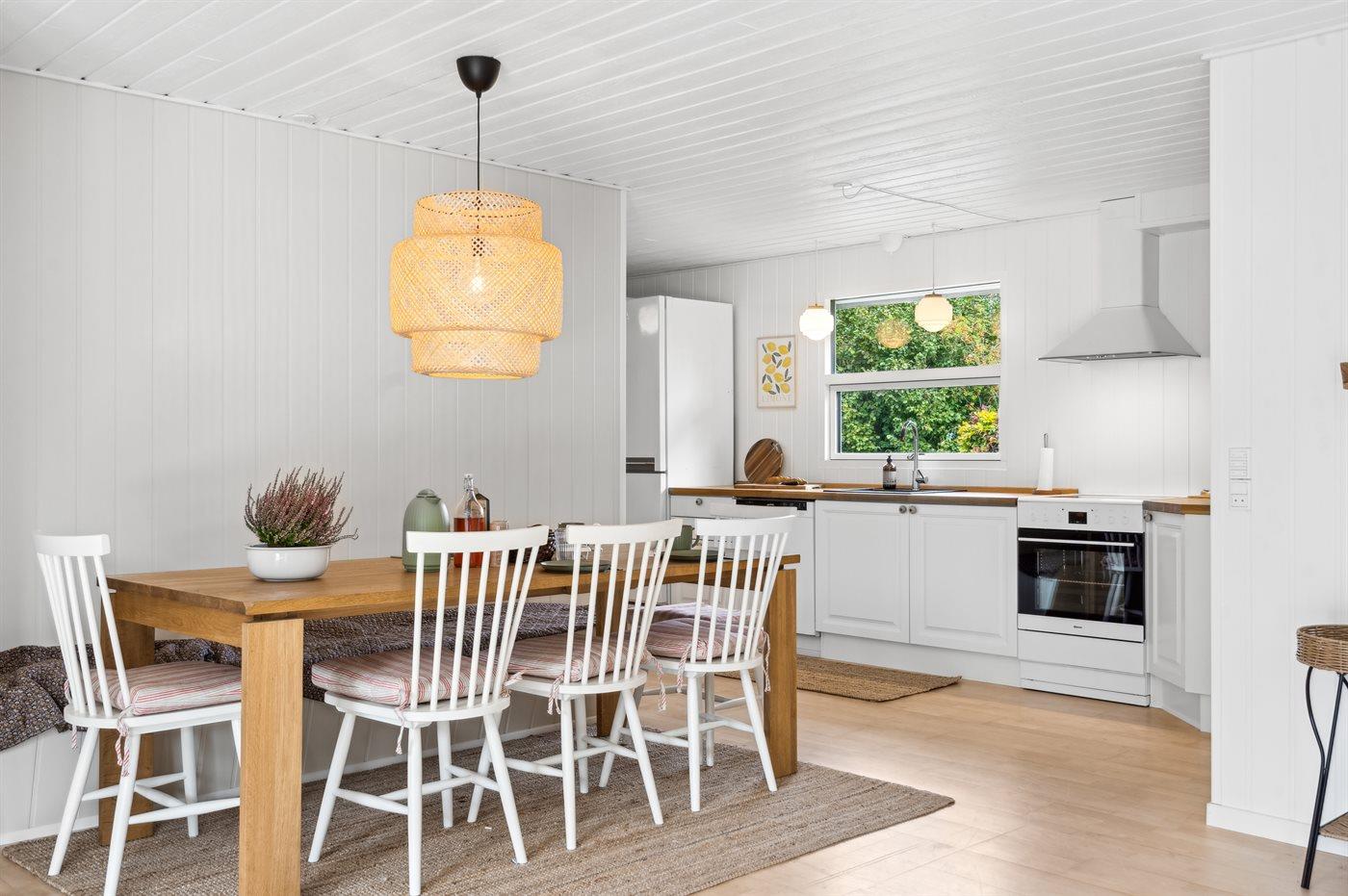 Schönes Ferienhaus mit Platz für die ganze Familie, gelegen in der Nähe der Stadt Ebeltoft. Das Haus, das im Frühjahr 2024 komplett renoviert wurde, ist mit fünf stilvollen und charaktervollen Schlafzimmern ausgestattet. Neben den schönen Zimmern gibt es einen gemütlichen Hobbyraum, in dem sich die Kinder vergnügen können, während andere ungestört am anderen Ende des Hauses vor dem neuen Kaminofen entspannen können. Draußen liegt das Haus auf einem wunderschönen Grundstück, bei dem der gesamte Garten eingezäunt ist, sodass Kinder und Hund frei herumlaufen können, ohne dass du dir Sorgen machen musst, dass sie weglaufen könnten. Die Unterkunft befindet sich im beliebten Vibæk Strand, nur eine kurze Entfernung vom Zentrum Ebeltofts, den gemütlichen Einkaufsstraßen und der pulsierenden Innenstadt entfernt.
