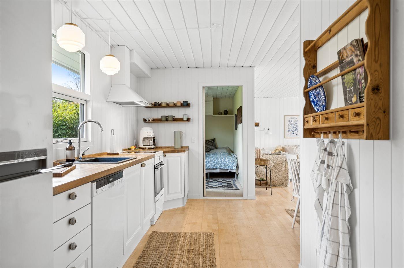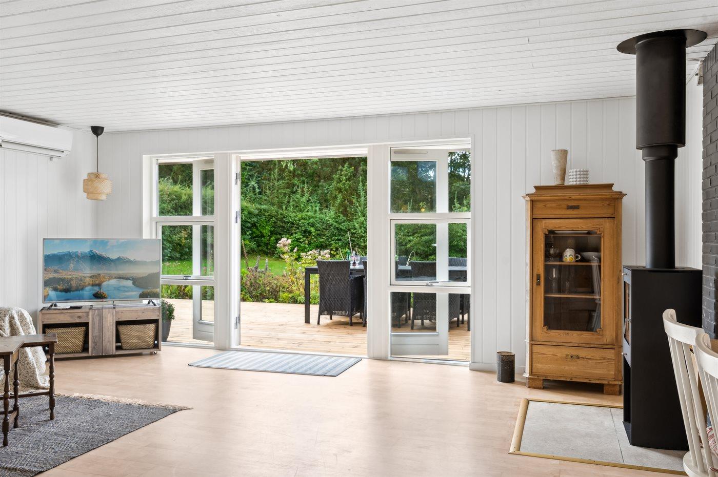 1 Smart-TV. 1 Apple-TV. Mindestens 4 dänische Fernsehsender. 1-3 schwedische Fernsehsender. 1-3 norwegische Fernsehsender. Mindestens 4 deutsche Fernsehsender. Es steht kabellose Internetverbindung zur Verfügung.
