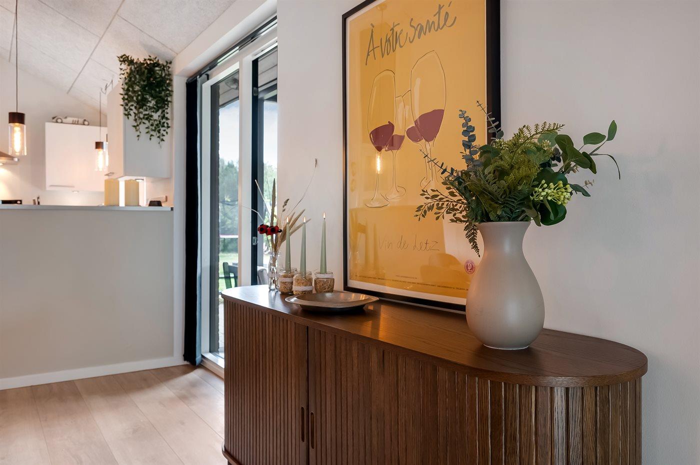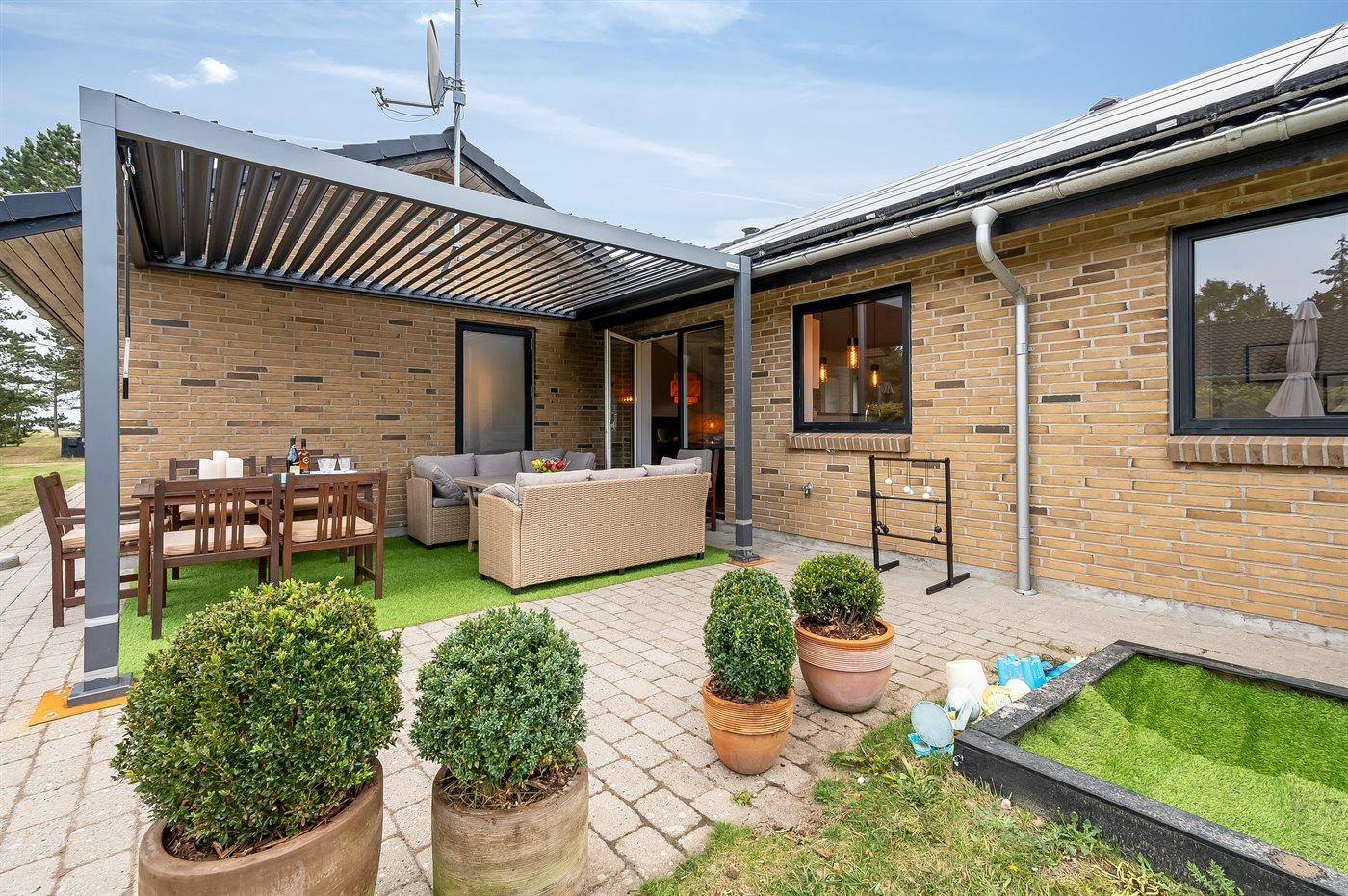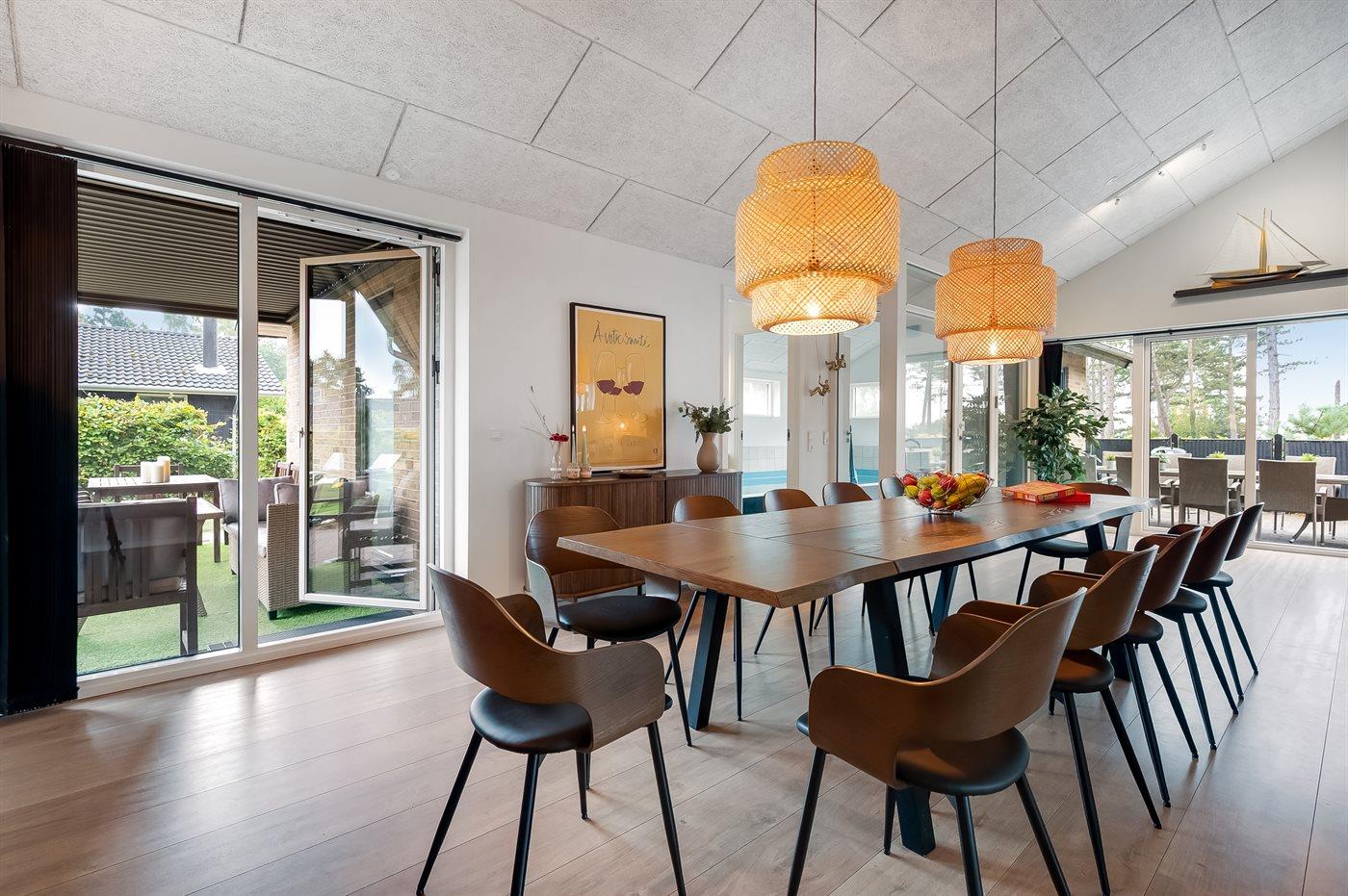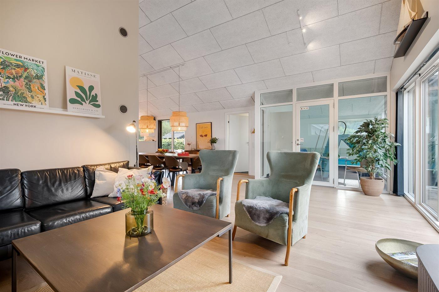 Ein topmodernes Pool-Ferienhaus, das ideal für eine große Familie oder mehrere Familien das ganze Jahr über ist. Das Haus ist hervorragend isoliert und energieeffizient, mit einer fantastischen Lage in zweiter Reihe zum Strand und einem kleinen Blick auf das Wasser. Es liegt mitten im attraktiven Gebiet Øer Strand – nur wenige Kilometer südlich von Ebeltoft.