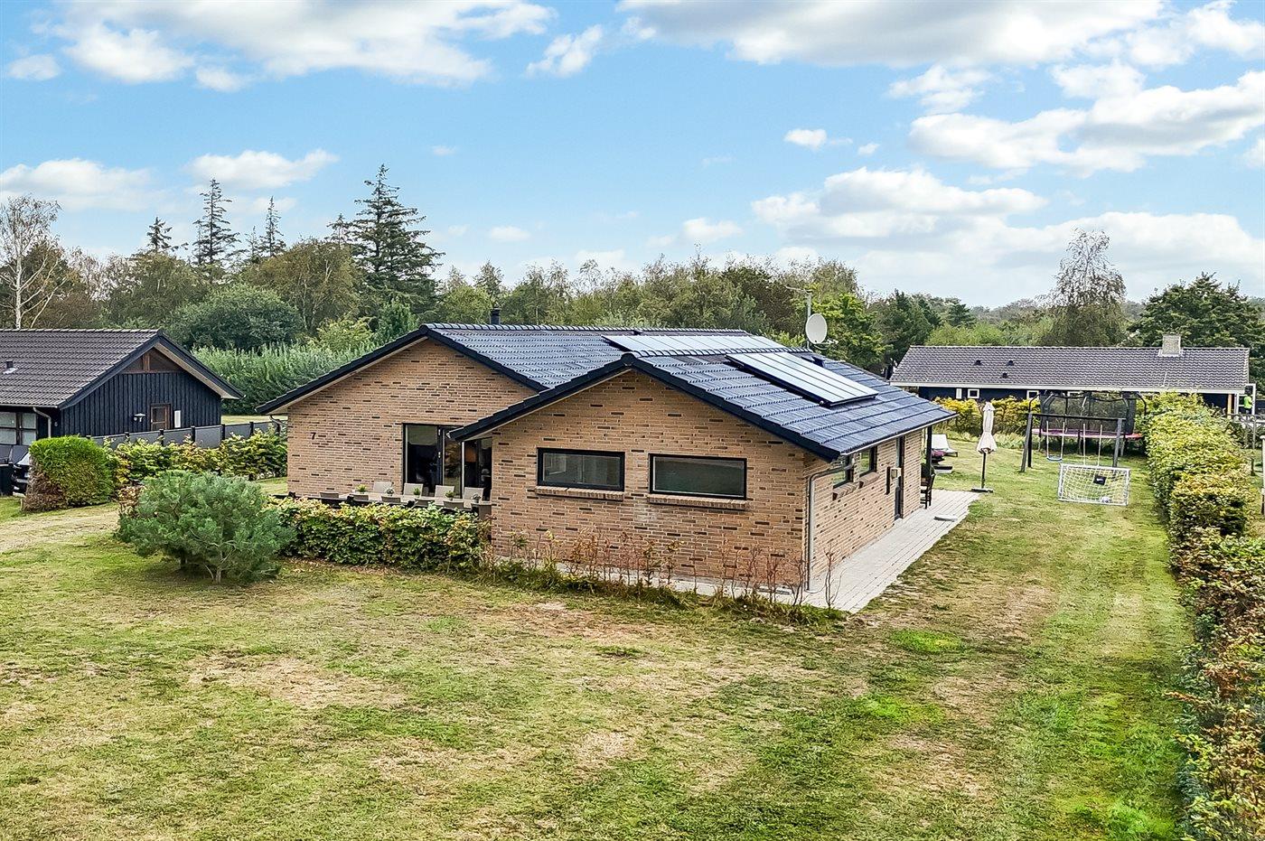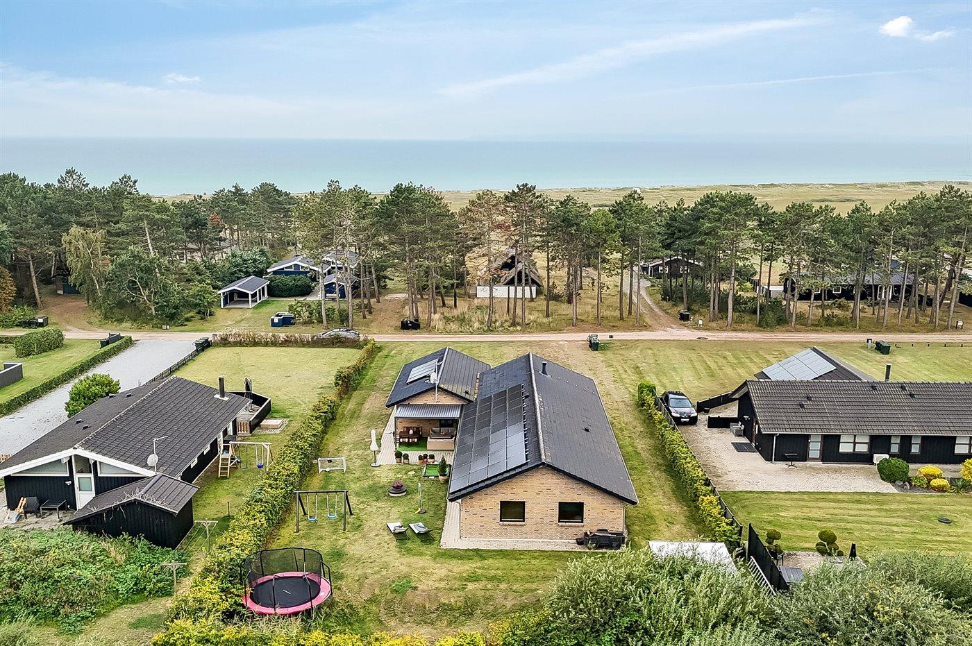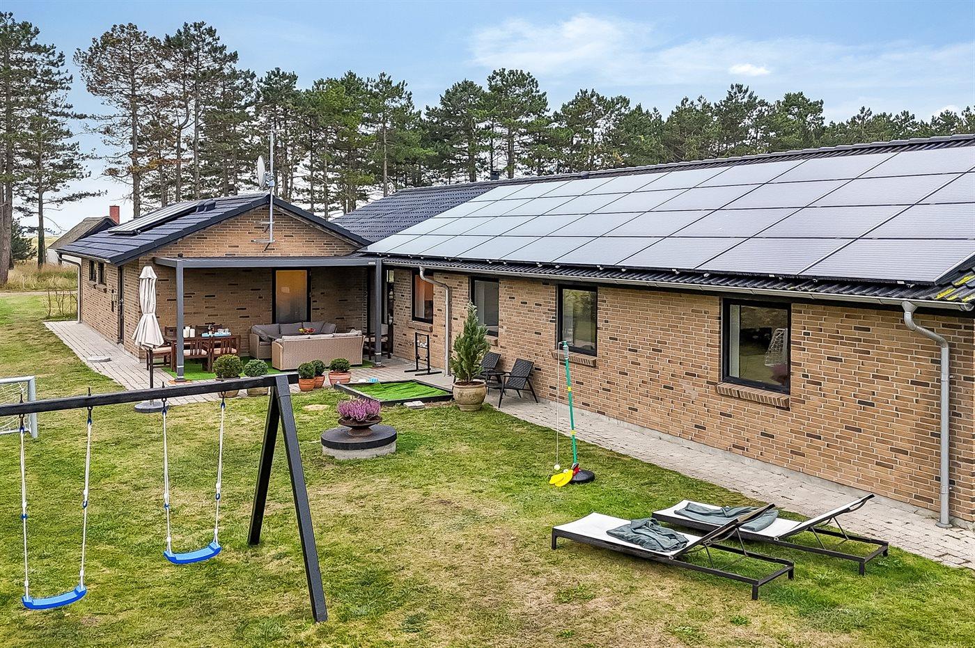 Die Ferienunterkunft liegt auf einem 1300 m² großen Gartengrundstück. Die Entfernung zum Meer beträgt 200 m. Die nächste Einkaufsmöglichkeit liegt 1200 m entfernt. Es steht ein offenes Terrassenareal zur Verfügung. Außerdem gibt es überdachte Terrasse. Geräteraum. Schaukel. Sandkasten. Trampolin. Fußballtor. Außendusche. Es steht ein Grill zur Verfügung. Es ist ein Ladestecker für Elektroautos installiert. Ladestecker Typ 2. Mit einer Ladeleistung von 11 kW. Parkplatz auf dem Grundstück.
